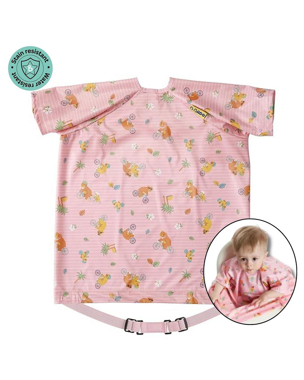 Bibado Short Sleeve Coverall Weaning Bib-Teddy Bear Pink-Adjustable Straps-For Infants