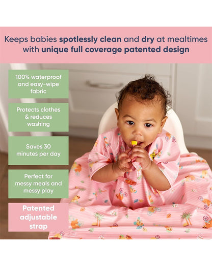 • Convenient, Adjustable Sleeve Bib:  Our adjustable toddler bib fits any highchair perfectly, with or without trays. Simply attach your versatile high chair bib to prams and tables to keep your child neat, clean, and dry when eating.