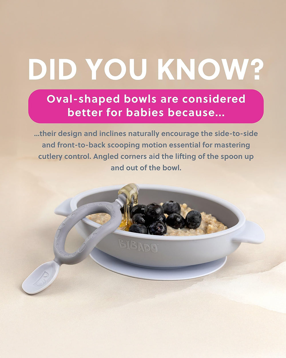 • Shaped for Scooping: The oval bowl features curved inclines that help little ones master key scooping movements.
