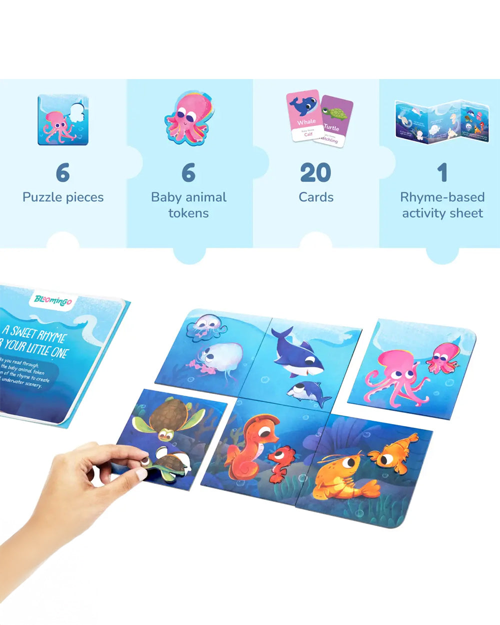 • Mommy & Baby Animal Puzzle: Match baby sea animals to their mothers using large, easy-to-handle puzzle pieces suited for young children.