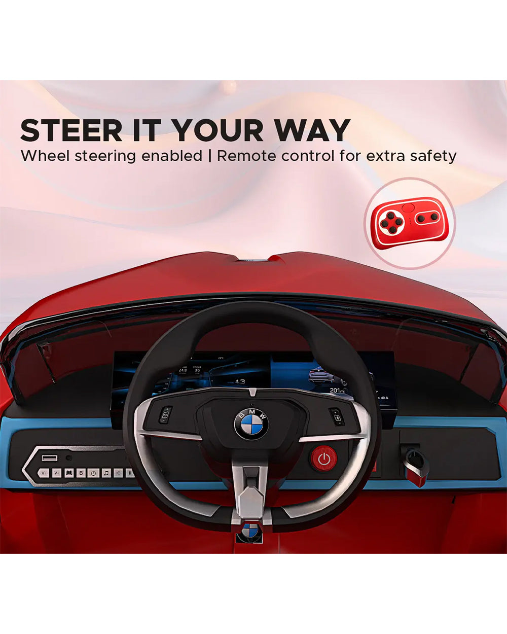 BMW i4 Ride On Car-Battery Operated-With Manual or Remote Option to Steer-Tough Tires with Rear Suspension-Integrated Music-Emotorad-For 3Y+ (Upto 30 kg)-Red
