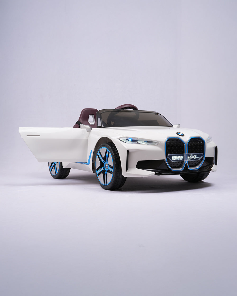 BMW i4 Ride On Car-Battery Operated-With Manual or Remote Option to Steer-Tough Tires with Rear Suspension-Integrated Music-Emotorad-For 3Y+ (Upto 30 kg)-White