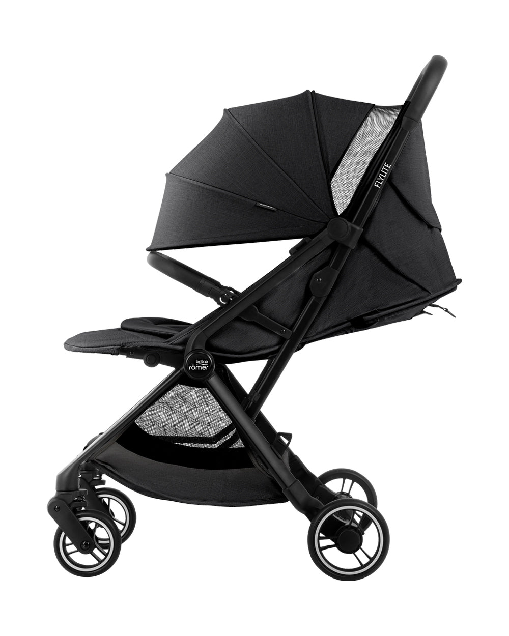 Britax Flylite Cabin Friendly Stroller-Extra Large Extendable Canopy-One Hand Fold-Flat Reclining Seat-Includes Carry Bag & Cup Holder-For 0 to 4Y (Upto 22Kg)-Carbon Black