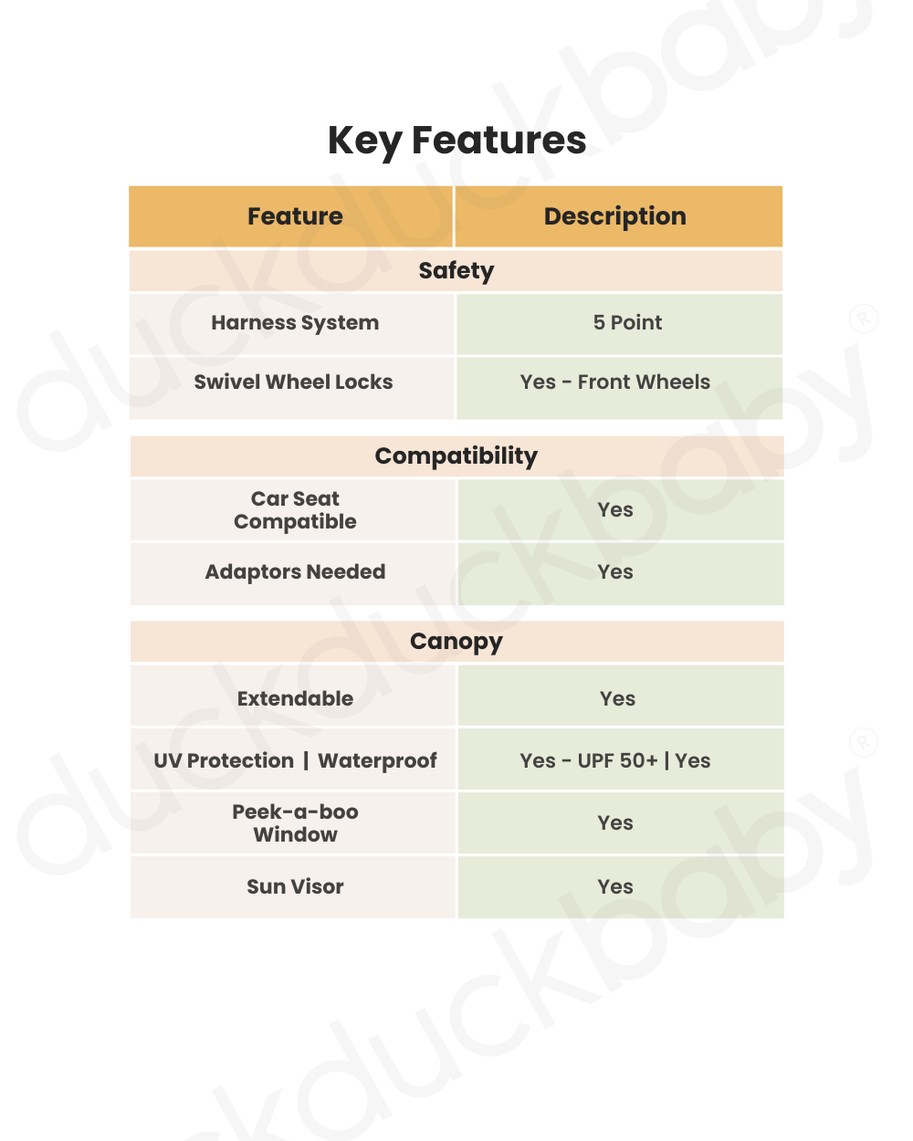 • Adjustable Canopy: Large UPF 50+ sun canopy with ventilation keeps your little one cool and protected in any weather.