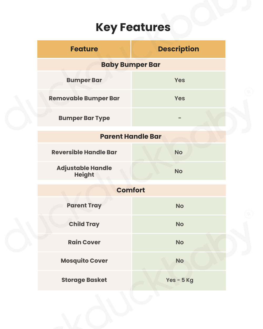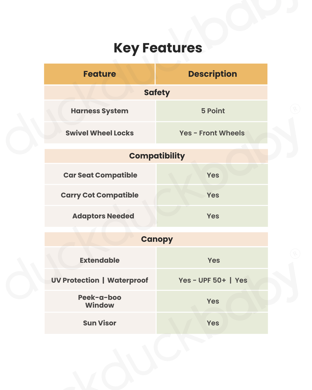 • Secure 5-Point Harness: Keeps your child safely strapped in and comfortable throughout every journey.
