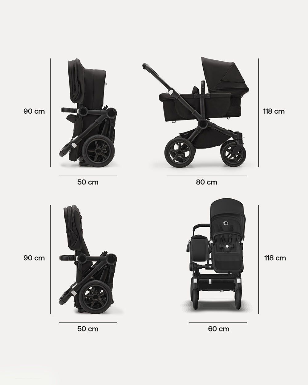 The Bugaboo Donkey 5 Mono 2-in-1 stroller is a future-ready pram designed for growing families, combining flexibility, comfort, and generous storage in one smart system. It can be used from birth with the bassinet and later converted to a toddler seat, while its clever frame allows upgrading to a double stroller in just a few clicks when a second child arrives. Compact enough to fit through standard doorways yet robust for everyday use, it offers smooth manoeuvrability, premium fabrics, and a side luggage basket for extra storage in Mono mode.