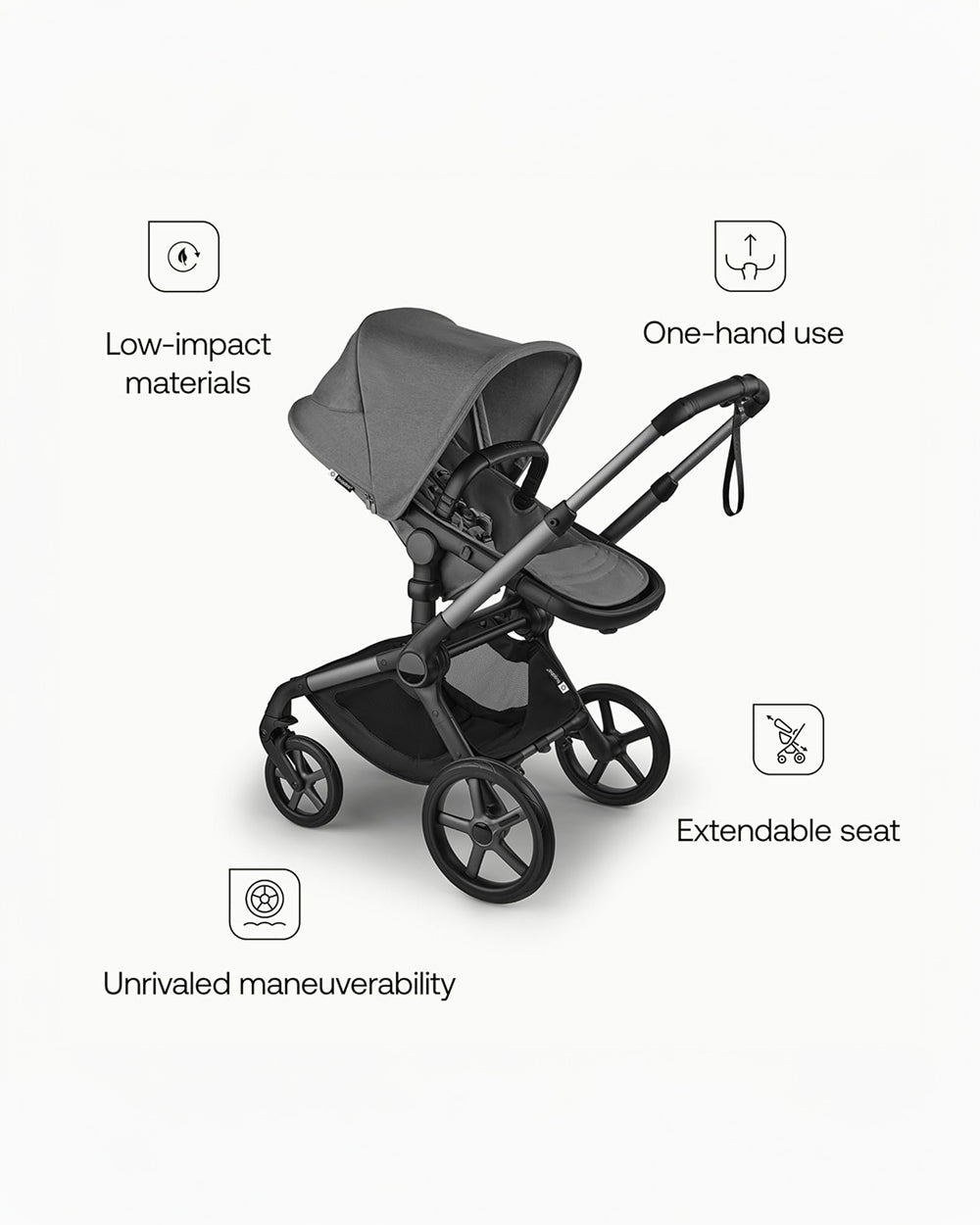 The Bugaboo Fox 5 Renew 2-in-1 stroller is designed to offer ultimate comfort and effortless performance for modern families who love exploring outdoors. More sustainably crafted, it combines a sturdy yet lightweight design with advanced suspension and extra-large wheels for smooth strolls on any terrain. With a bassinet that converts into a toddler seat and a spacious, ergonomic sleeping area, it provides a nurturing, future-ready solution from newborn stage through toddler years.