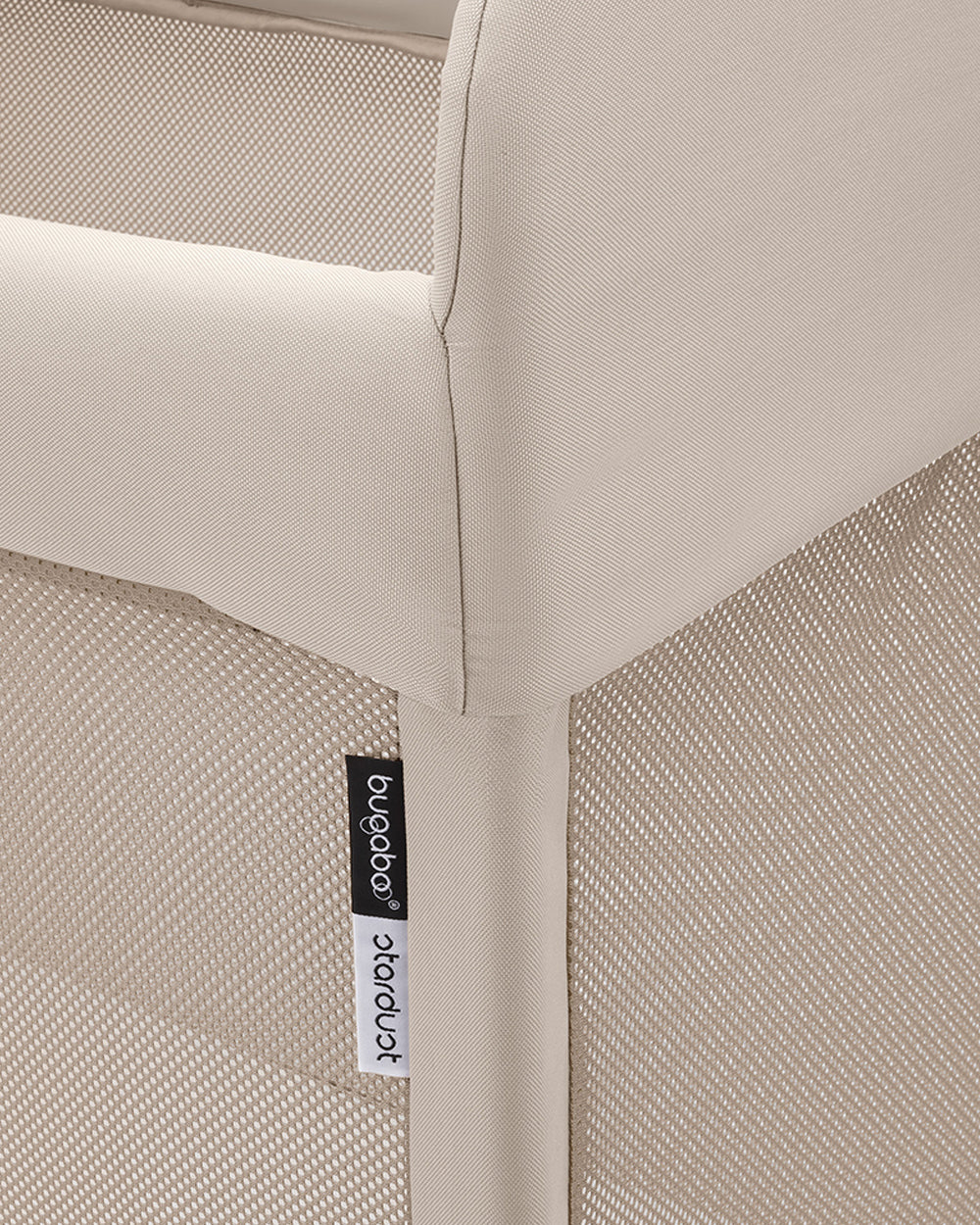 The Bugaboo Stardust Desert taupe is a versatile, portable play yard designed for newborns to 2 years old, offering a safe space at home or on the go with easy unfold in one second. It features a one-piece design that folds with the built-in comfortable thick mattress and includes a zip-in bassinet to bring newborns closer without bending over. Lightweight and compact for storage, it comes with a travel bag featuring Velcro closing and is compatible with the Stardust fitted cotton sheet sold separately.