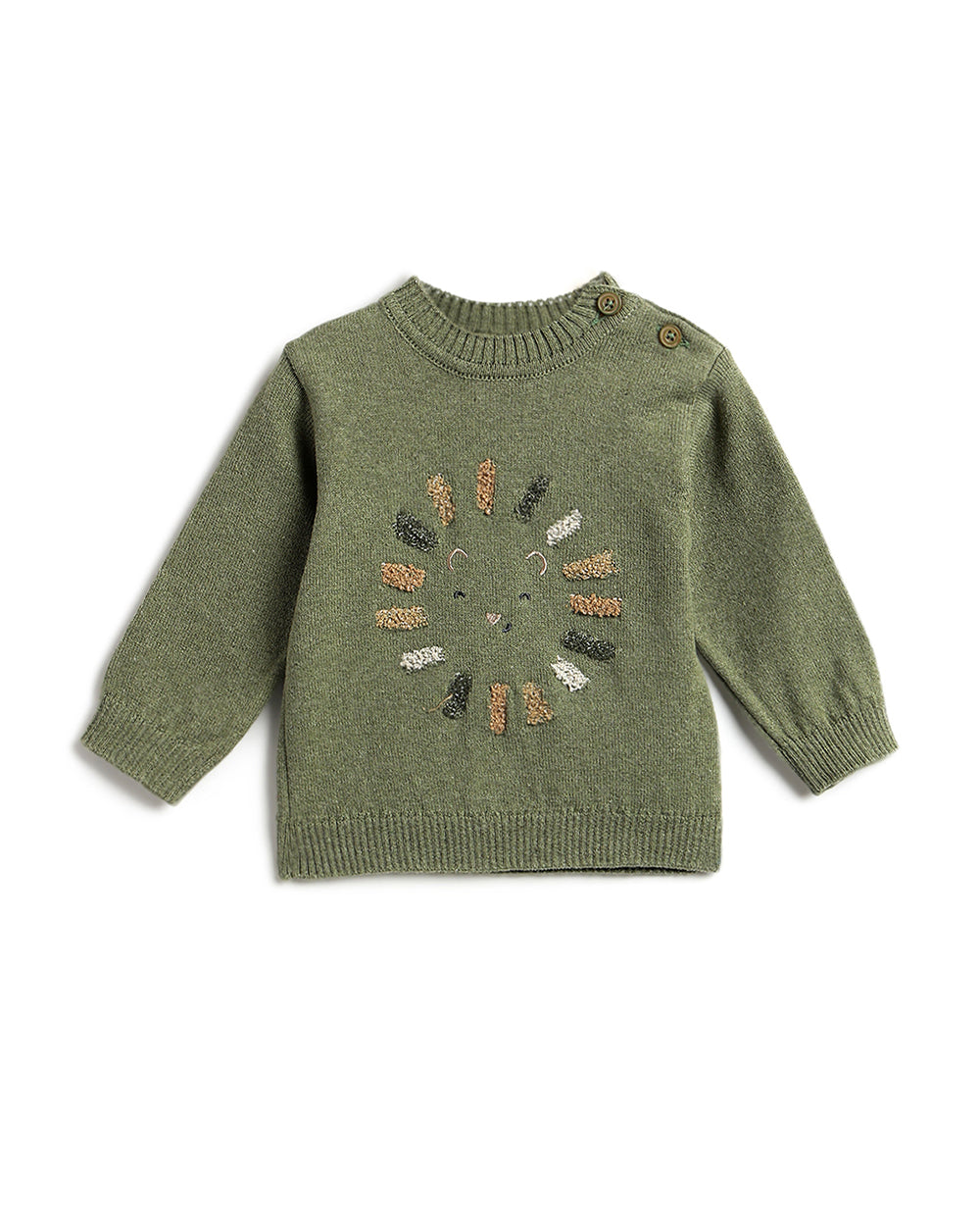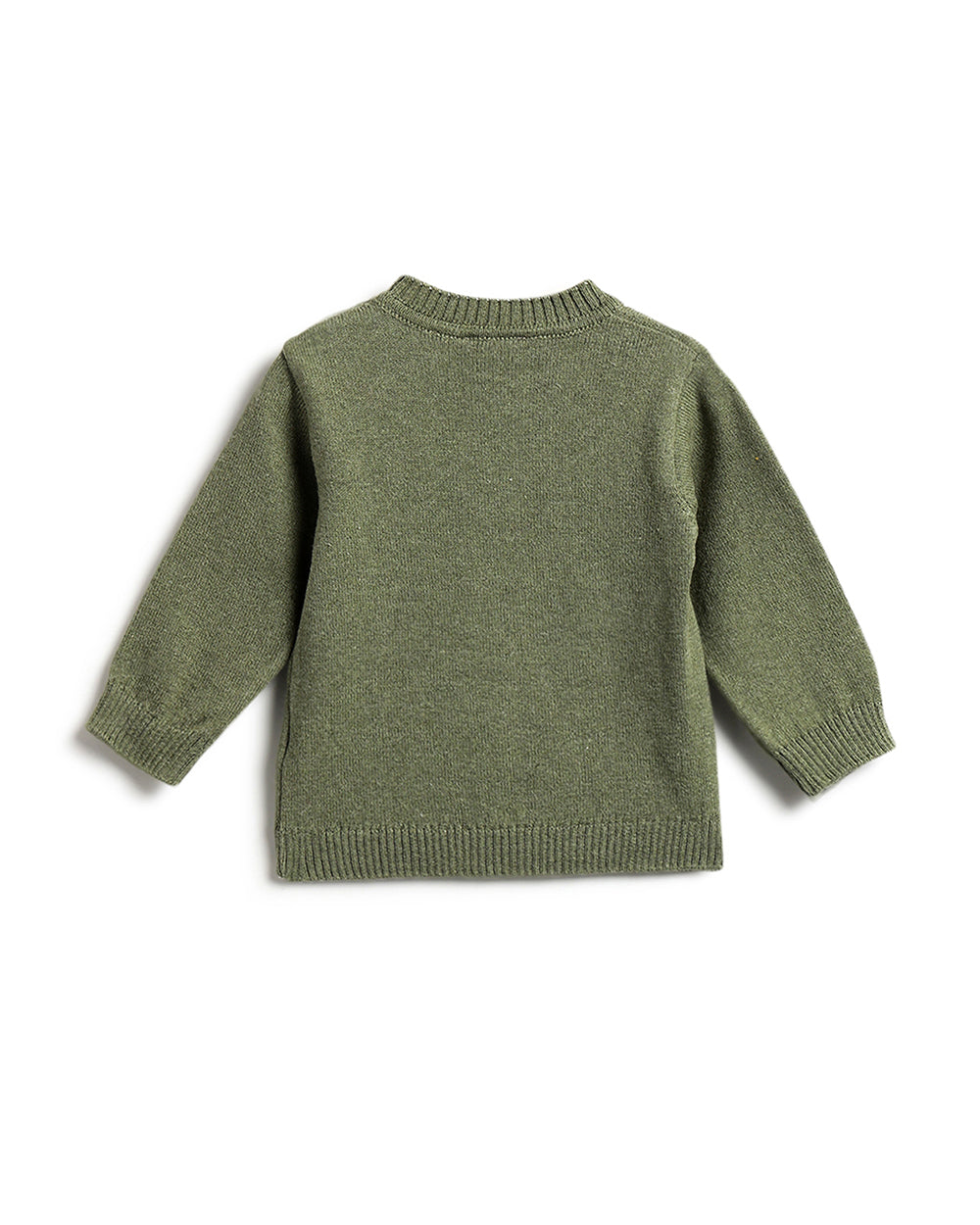 Chicco Army Green Sweater-Embroidered-Cotton Wool-For Infants
