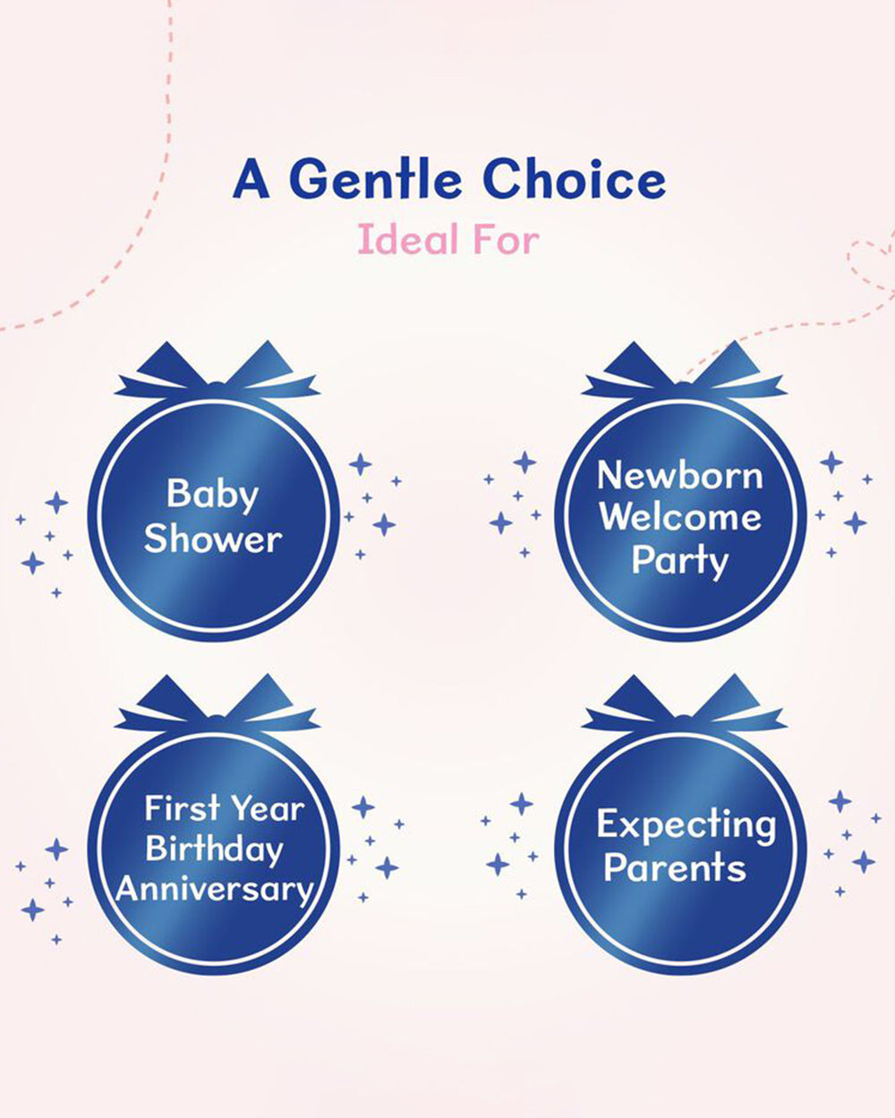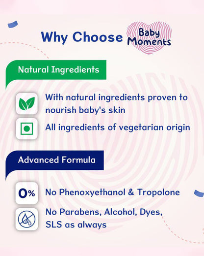 • Baby Moments gifting range. All the products are under Baby moments range which is Better as it’s made with the goodness of Natural Ingredients that are best known for nourishing & moisturizing baby’s skin. Each product is made with an Advanced Formula as It’s Phenoxyethanol Free: Phenoxyethanol is a commonly used preservative, the excess usage of which is suspected globally to cause skin irritation and allergies on babies’ sensitive skin