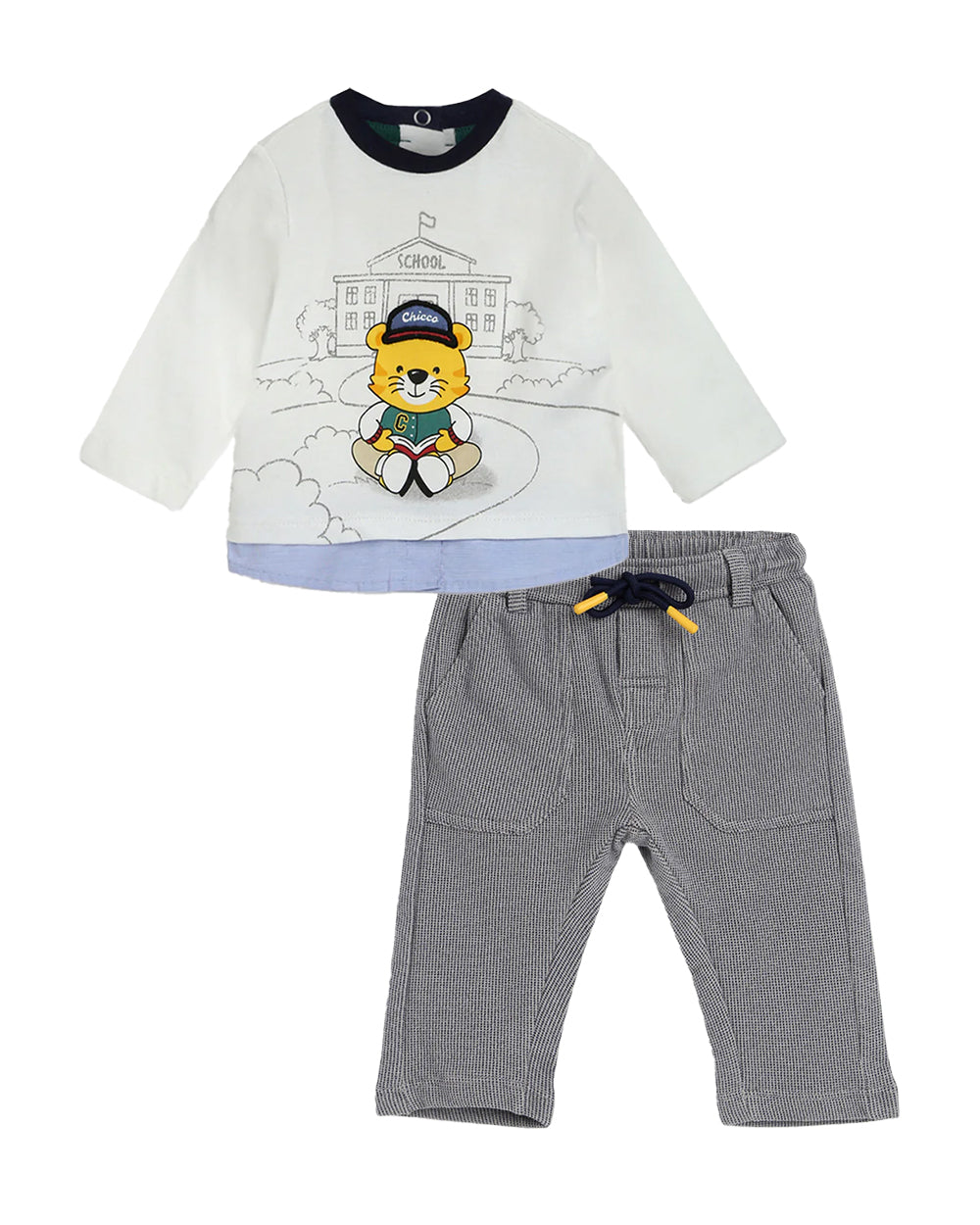 Chicco Bronze & Grey T-shirt & Trouser Set-Printed-Cotton-For Infants