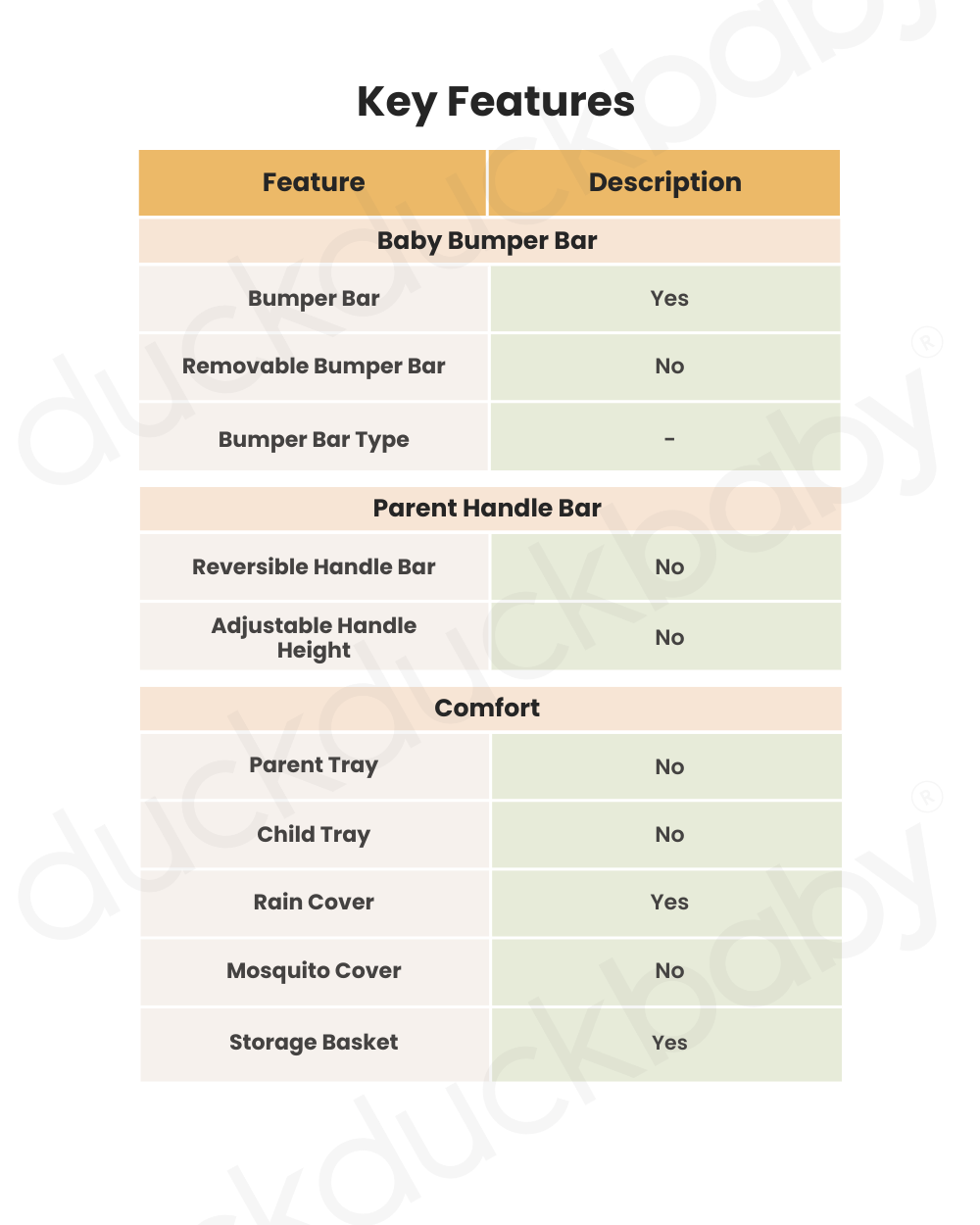 • Protective Canopy Coverage: Shields your child from sun, wind, and light rain for safer outdoor journeys.