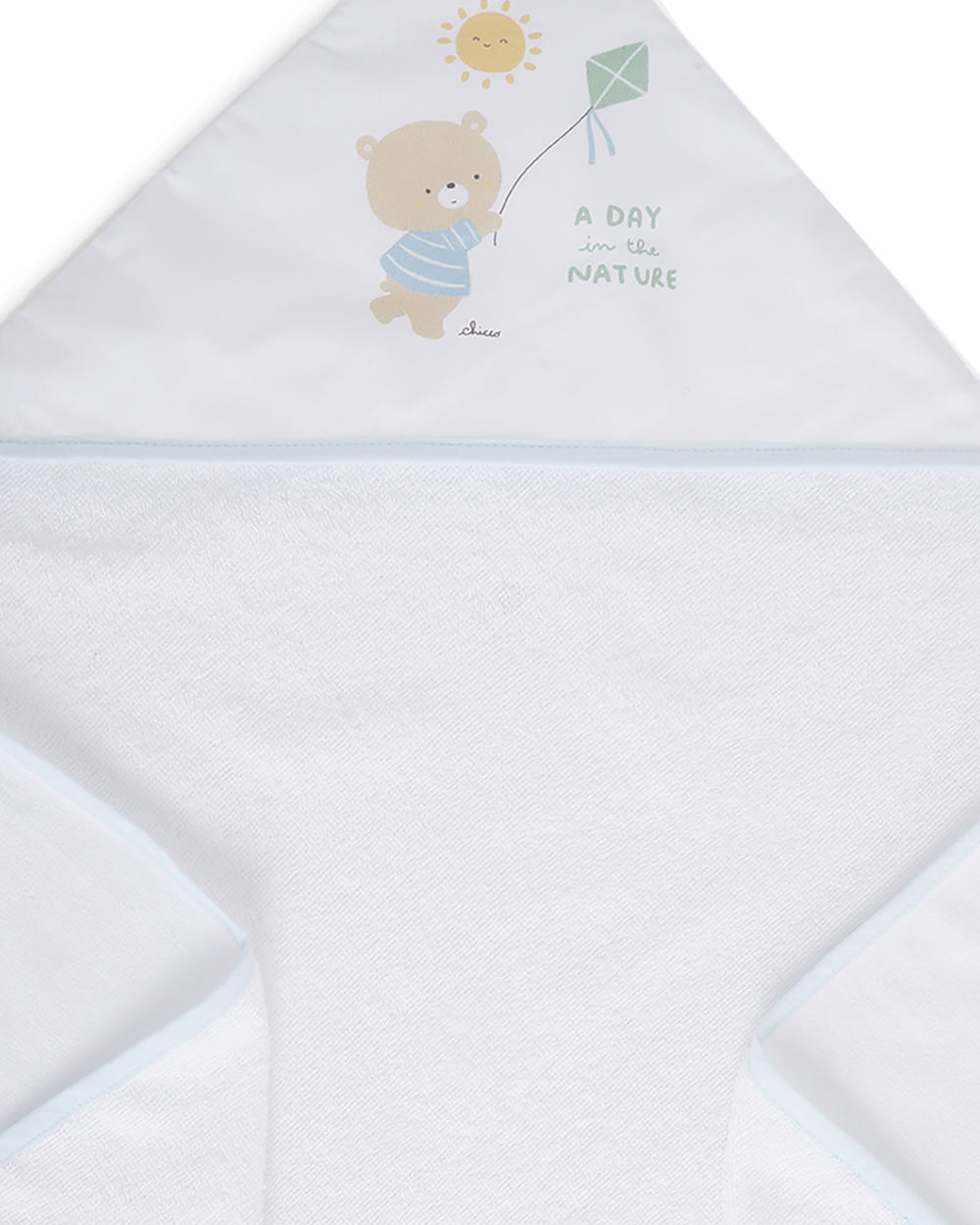 Chicco Hooded Baby Bath Towel-100% Organic Cotton-Light Blue