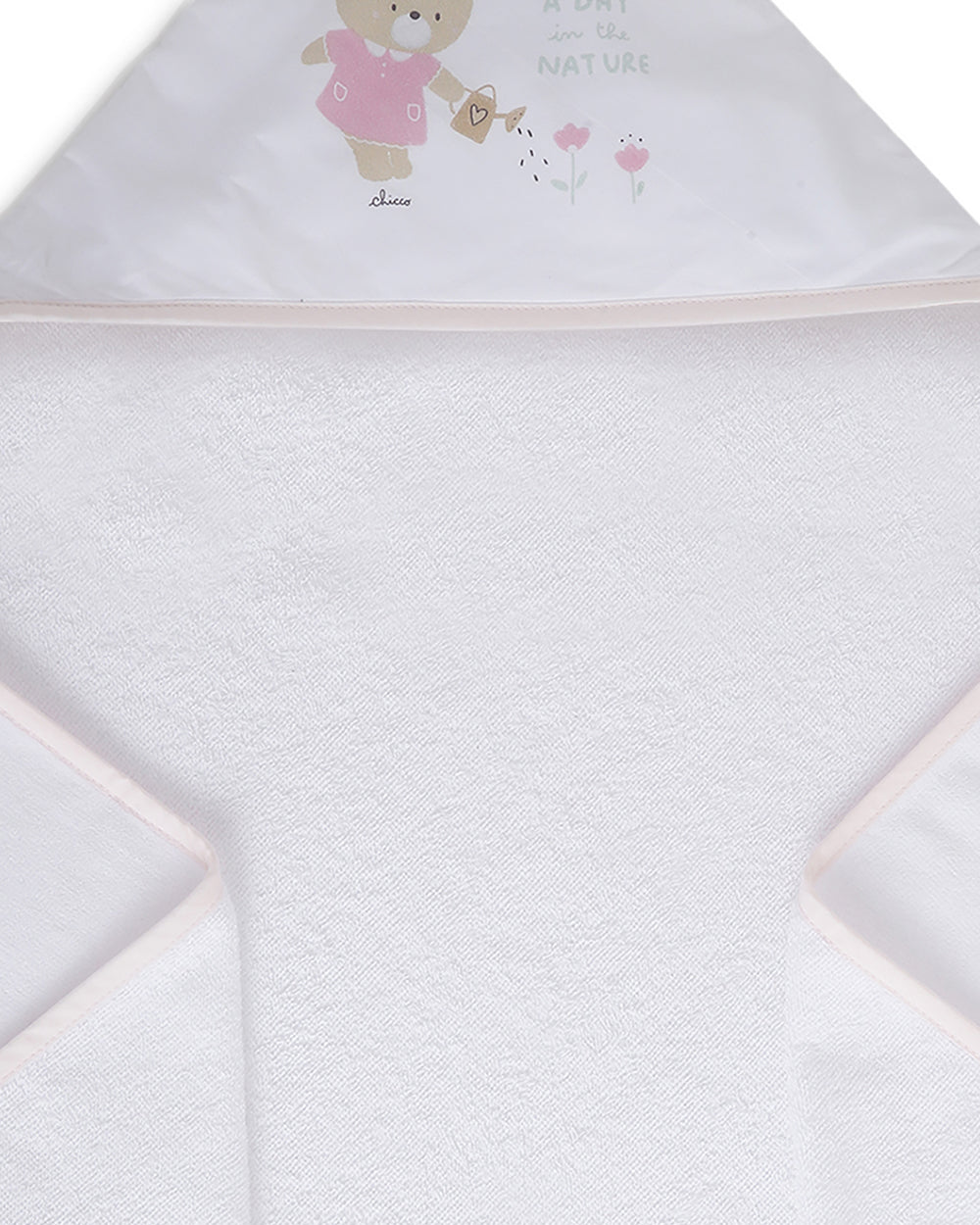 Chicco Hooded Baby Bath Towel-100% Organic Cotton-Light Pink