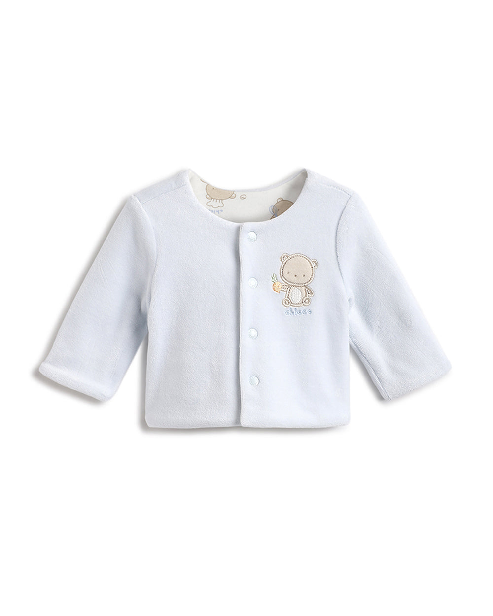 Chicco Light Blue Reversible Winter Wear Cardigan-Printed-Cotton & Polyester-For Infants