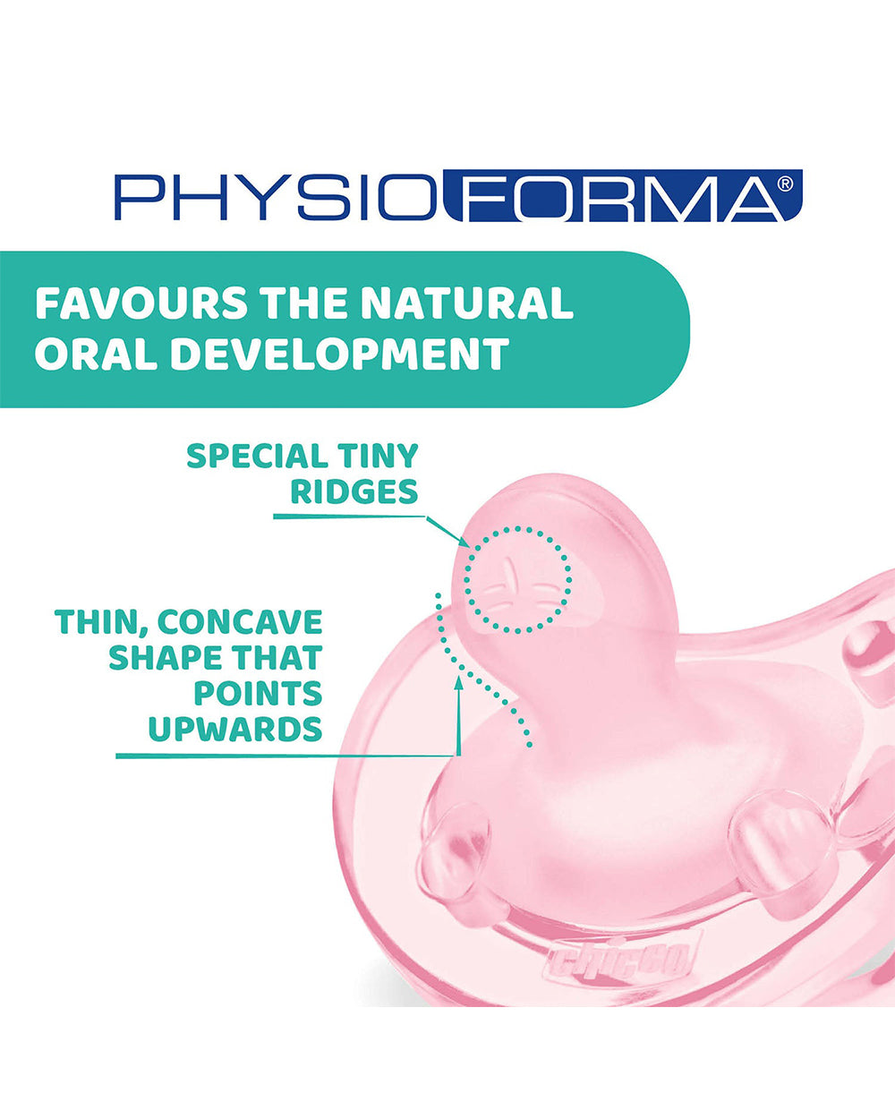 Chicco PhysioForma Soft Soother-With Ventilation Holes-Orthodontic-Pink-6 to 16M-Pacifier