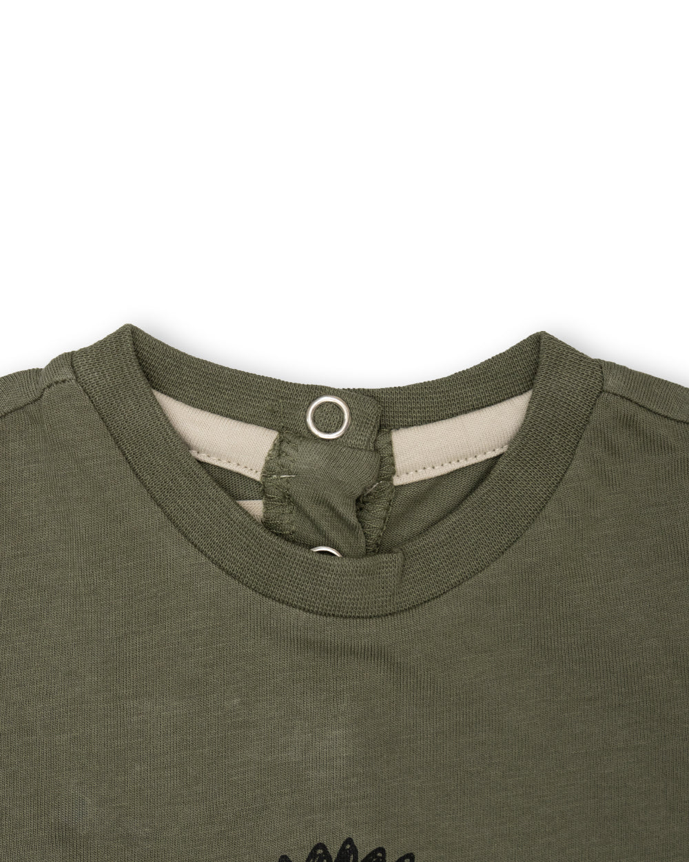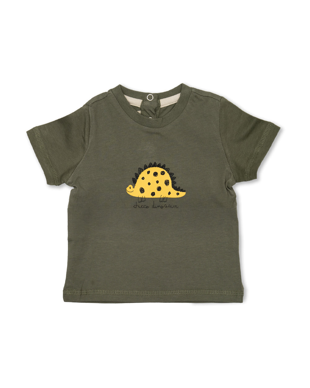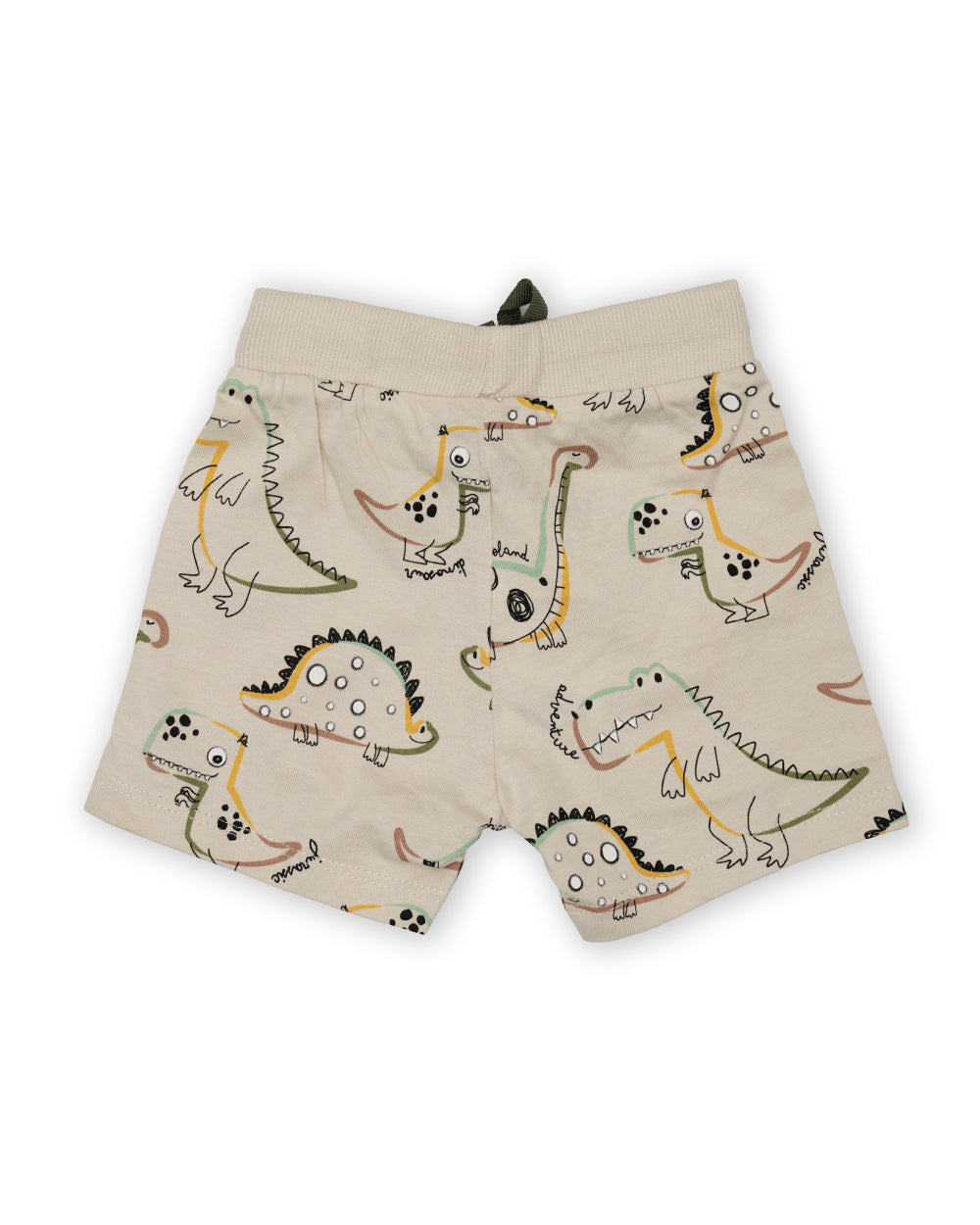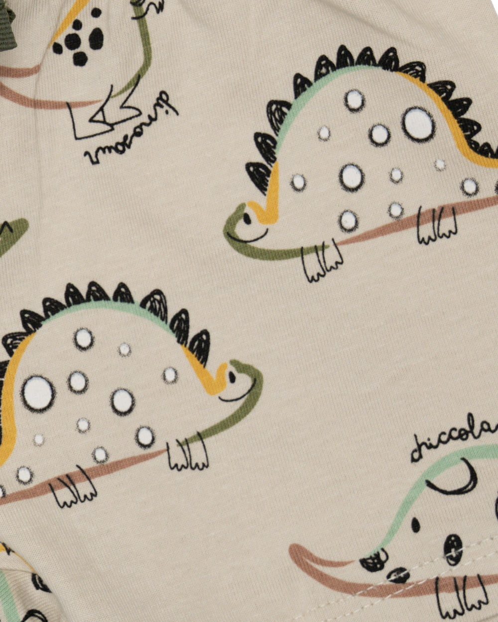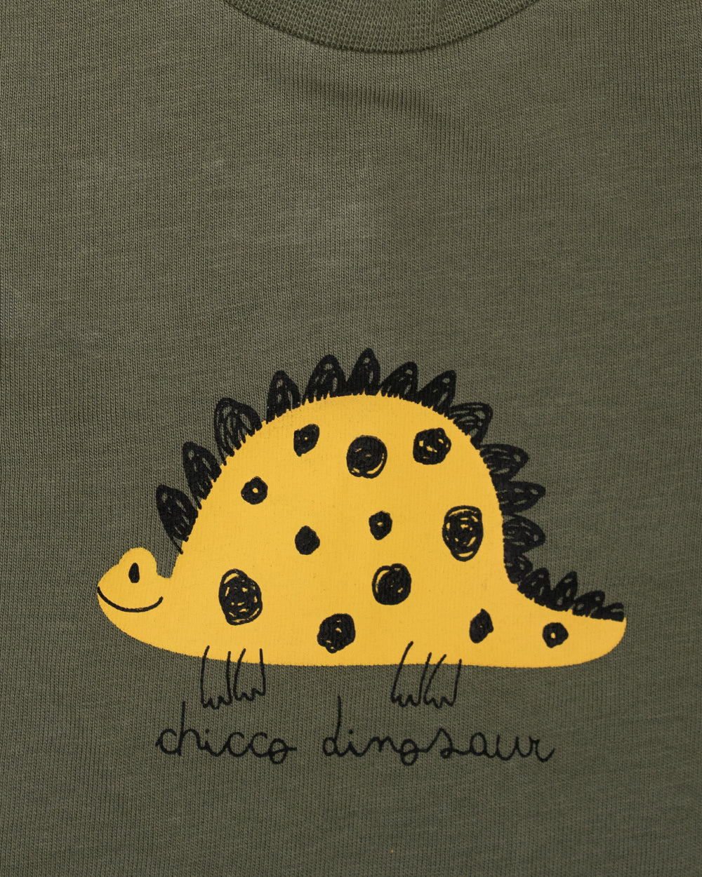 Chicco Sage Green & White T-shirt & Shorts Set-Cotton-Printed-For Infants