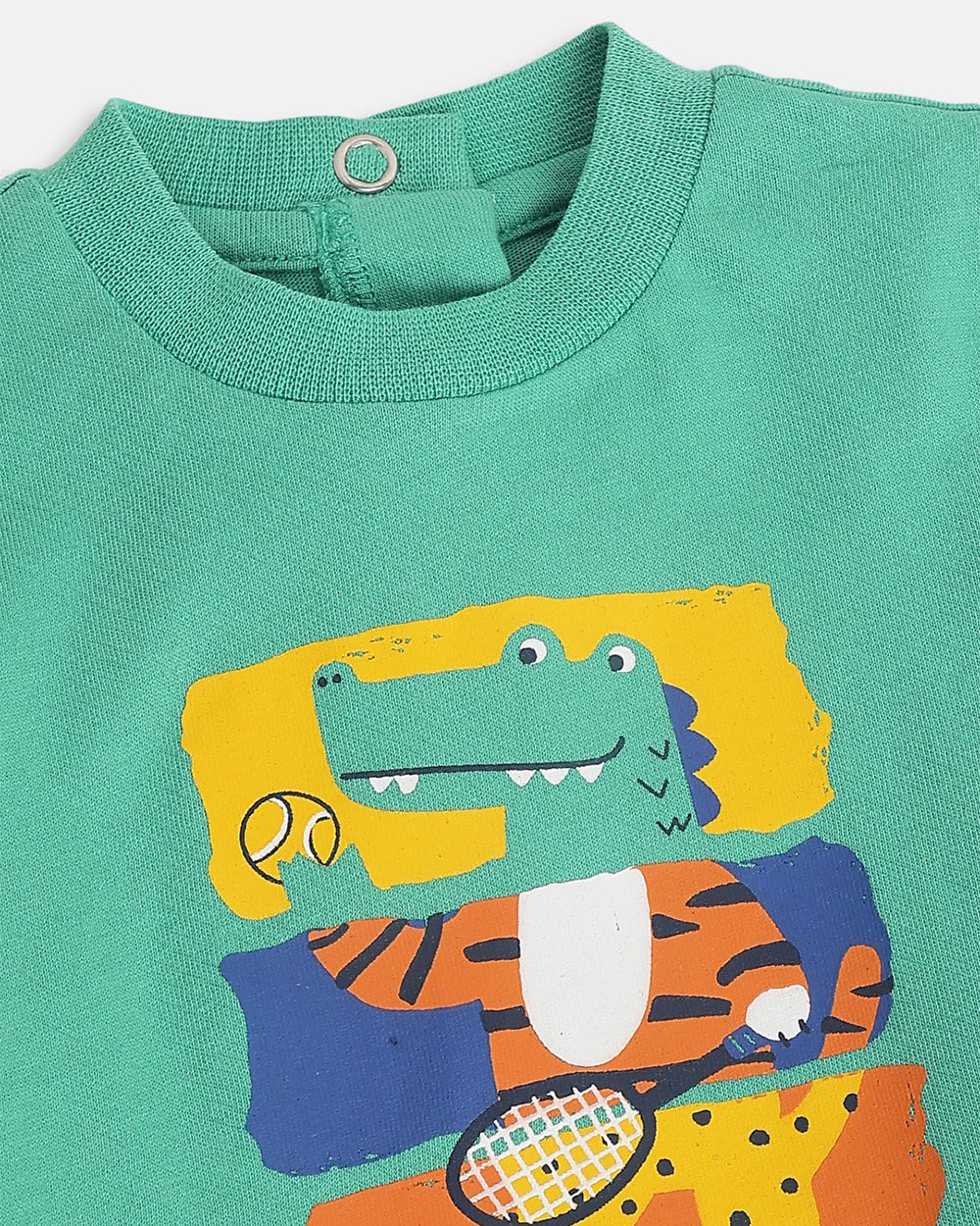 Chicco Sea Green & Grey T-shirt & Jogger Set-Cotton-Printed-For Infants