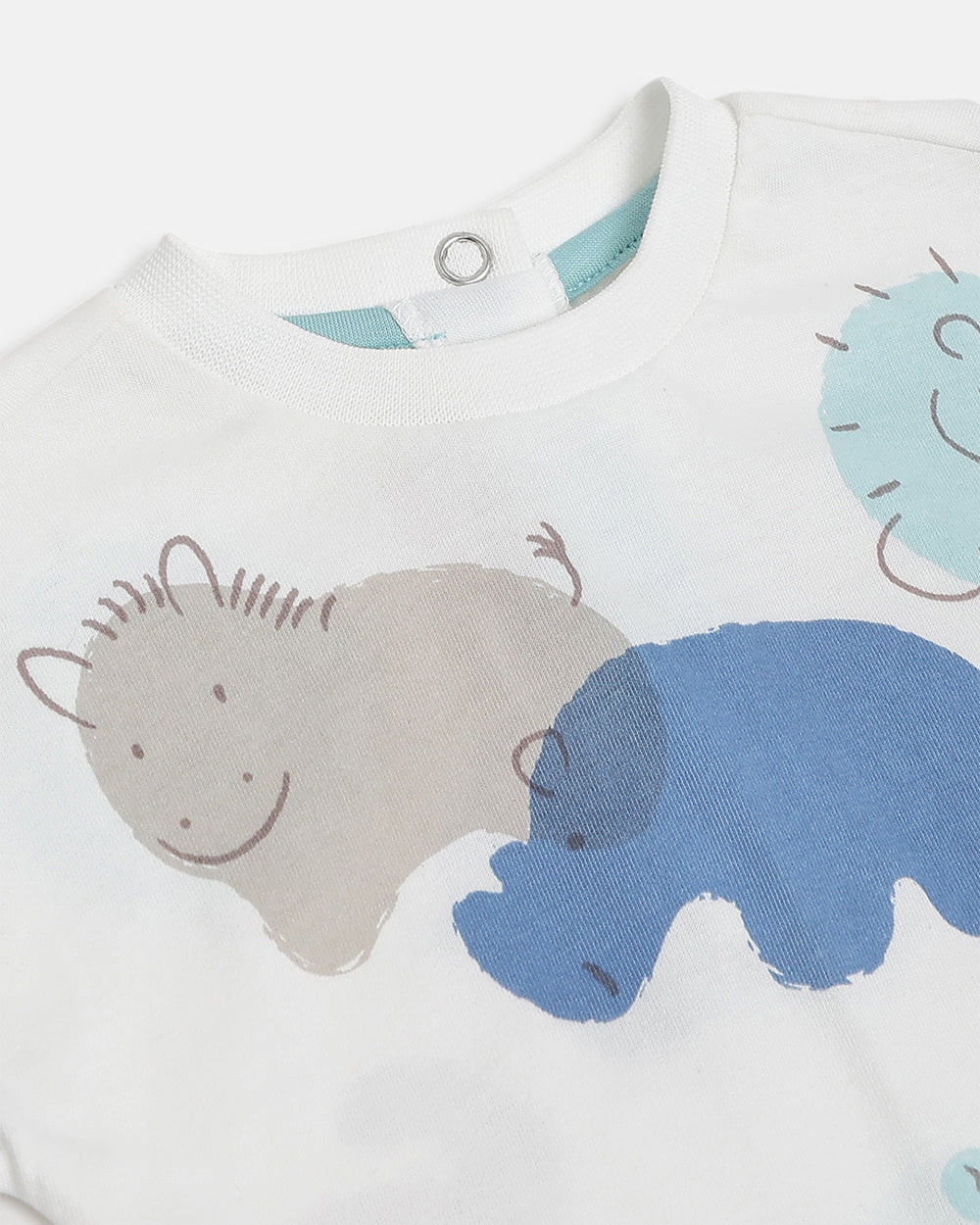 Chicco Sea Green T-shirt & Shorts Set-Cotton-Printed-For Infants