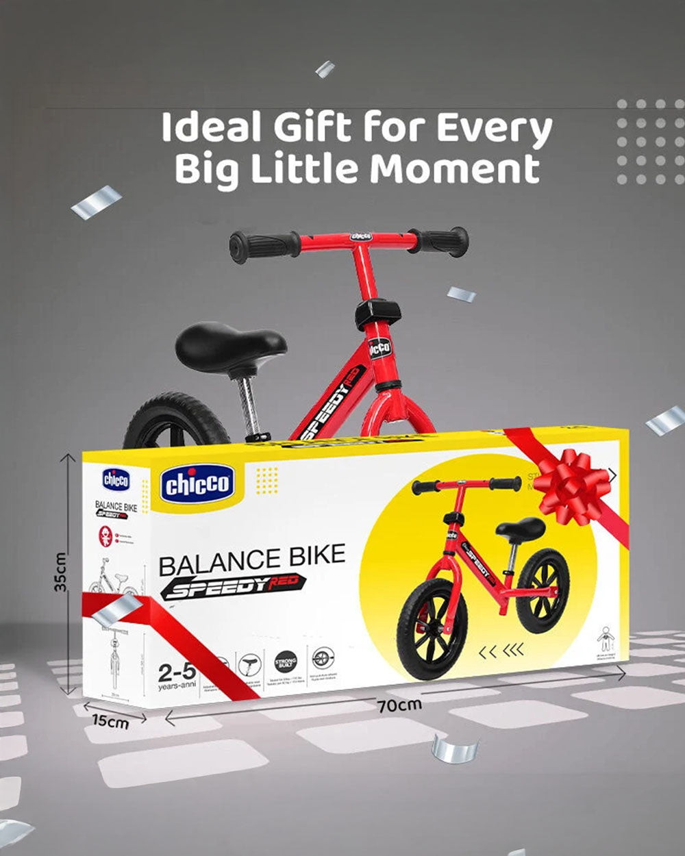 Chicco Speedy Balance Bike-Adjustable Handle Bar & Seat-Durable All Terrain Design-For 2 to 5Y (Upto 50 Kg)-Red