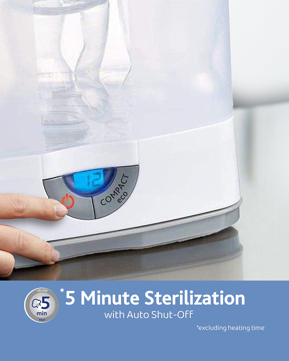 • Compact Eco mode and Fast Sterilization: The Chicco Sterilizer SterilNatural 3 in 1 is fast and easy to use. It sterilizes the objects in just five minutes (warming time excluded) while also offering an advantage to carry along while travelling. Also, allows saving up to 25% of time and energy