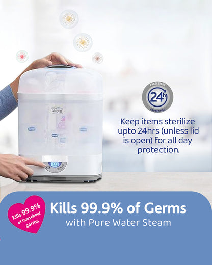 • Natural and Safe Sterilization: The Chicco Sterilizer SterilNatural 3 in 1 Sterilizer works on the process of intense steam that effectively cleans the baby utensils without affecting the product quality.