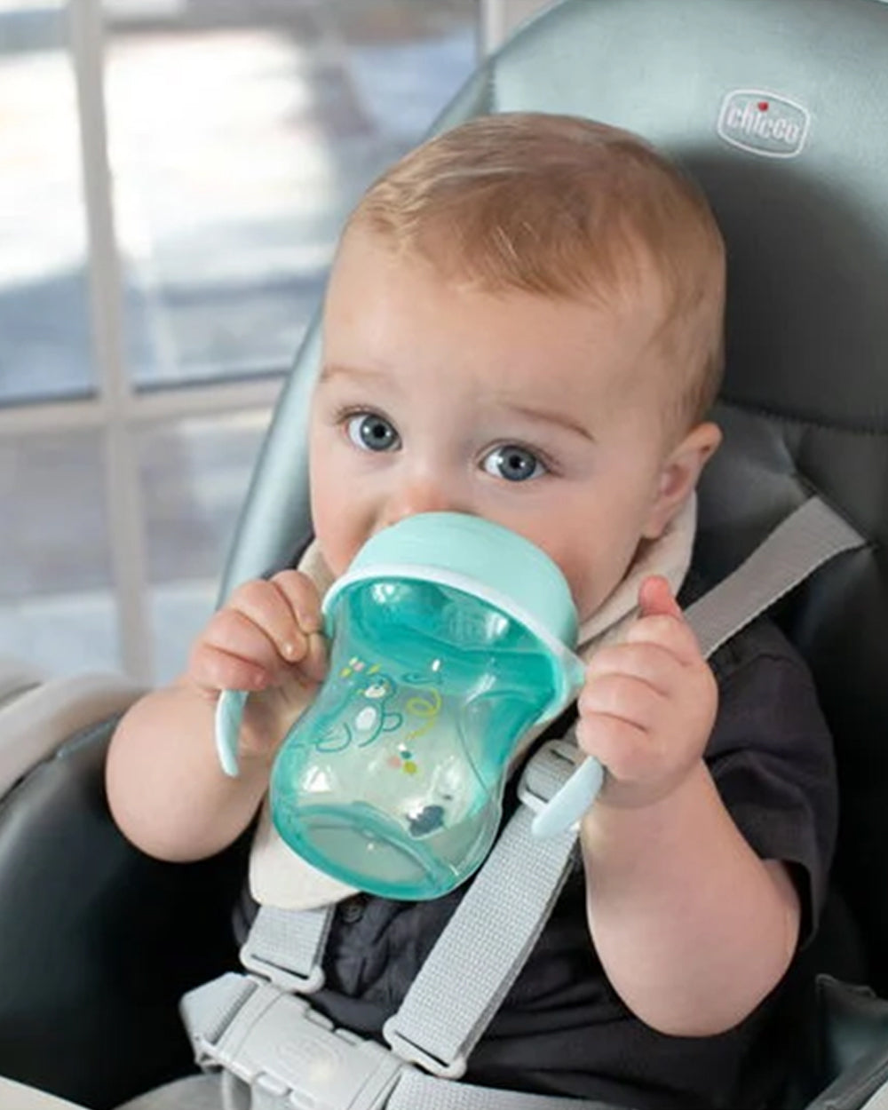 Chicco Training Cup-Ergonomic Design-Easy Grip-Spout Sipper-Teal-6M+