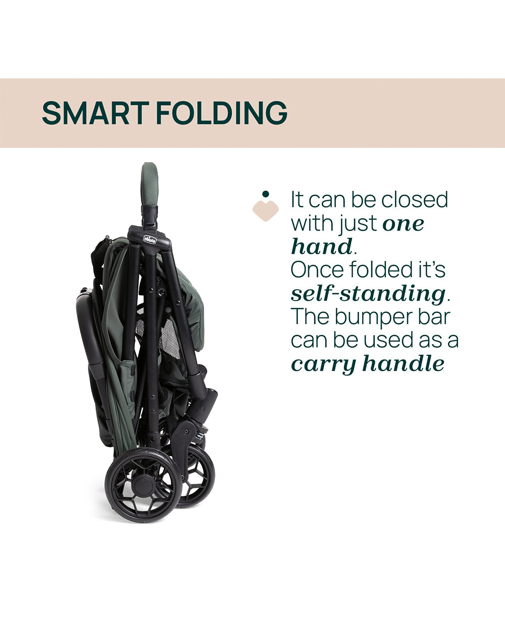 • Smart One-Hand Fold: The stroller easily folds using just one hand and becomes self-standing when closed, offering seamless convenience during transitions and travel.