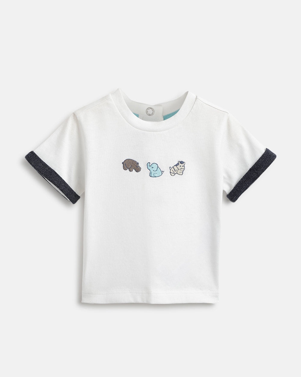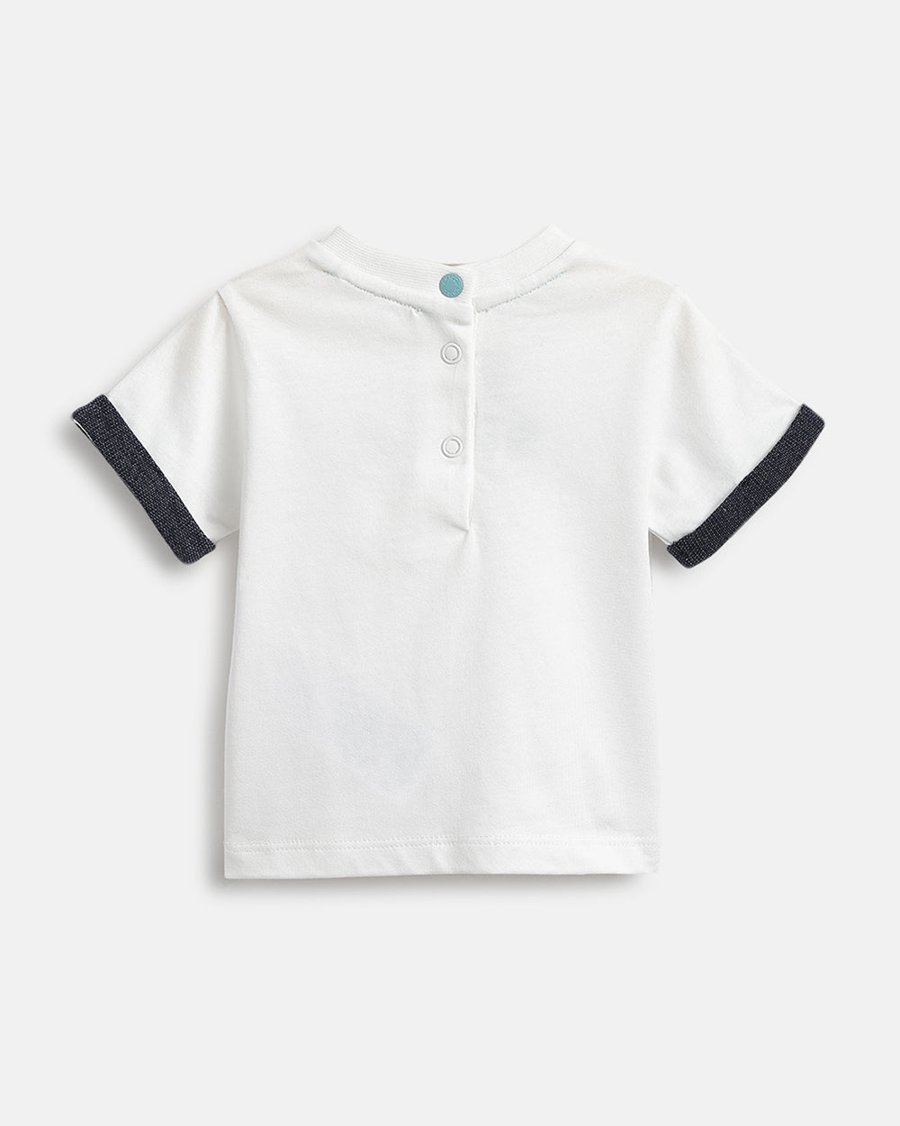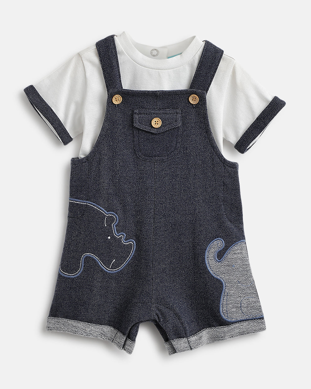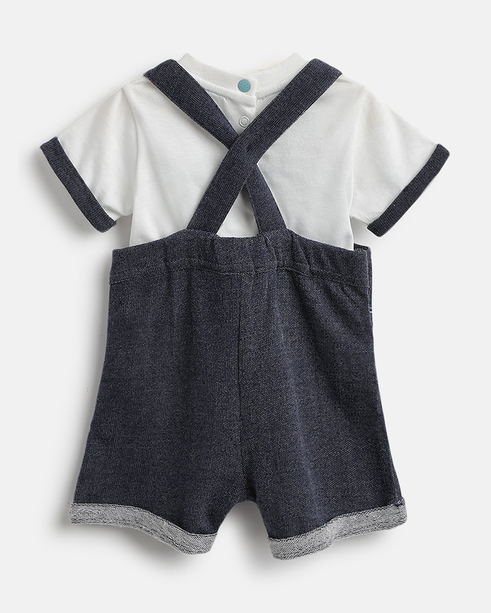 Chicco White & Navy Blue Dungaree with T-shirt-Cotton-Solid-For Infants