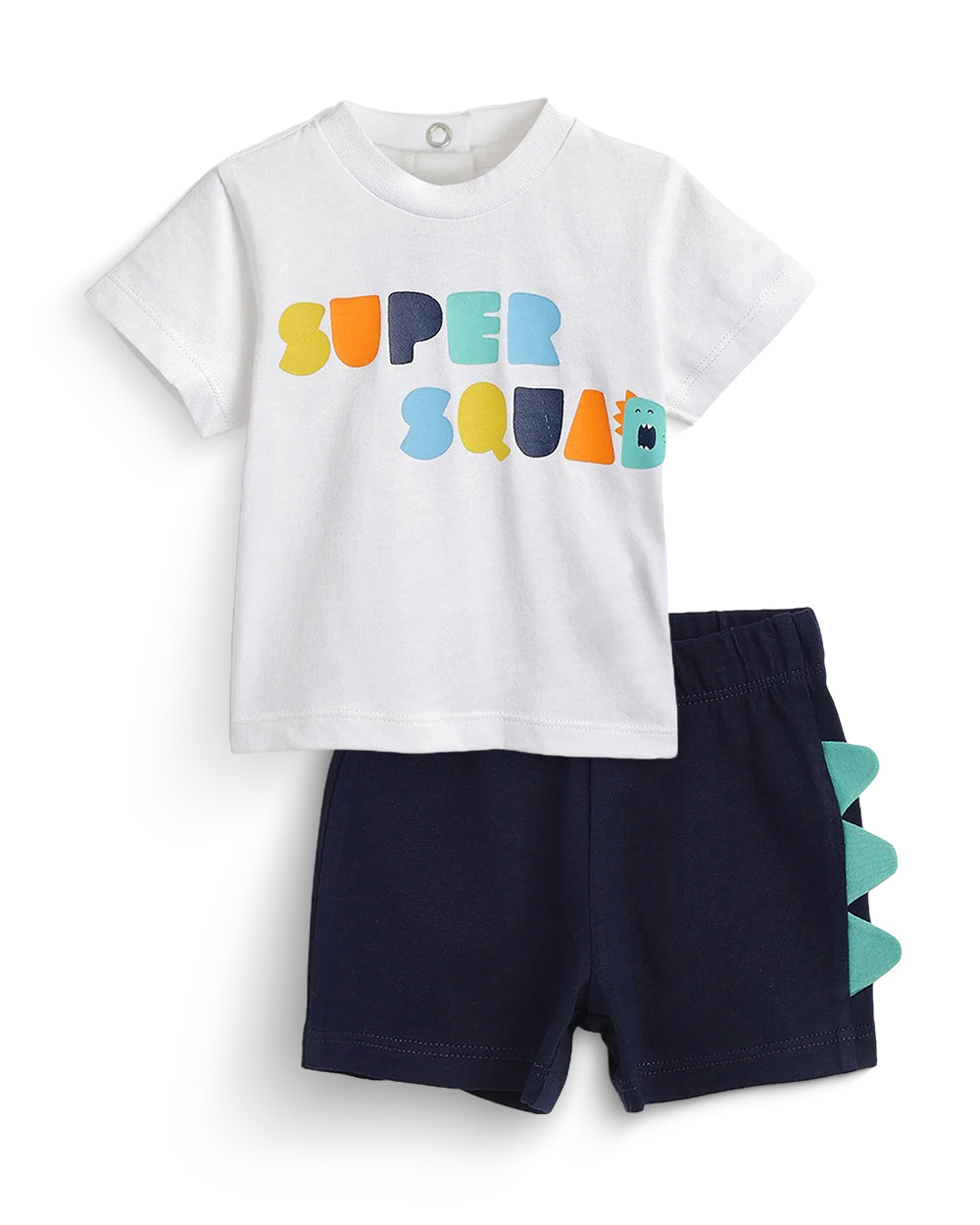 Chicco White & Navy Blue T-shirt & Shorts Set-Cotton-Printed-For Infants