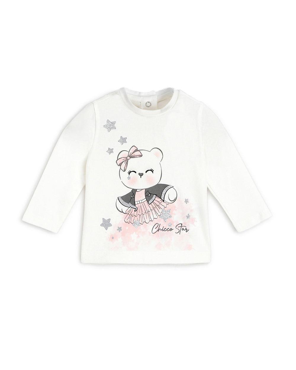 Chicco White T-shirt-Star Printed-Cotton-For Infants