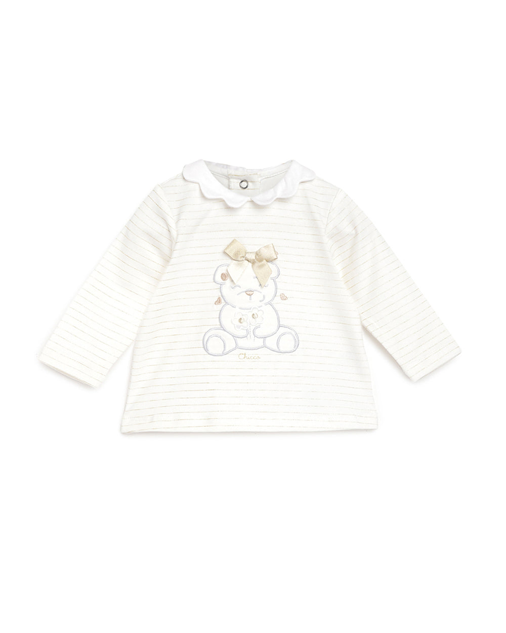 Chicco White T-shirt-Striped-Cotton-For Infants