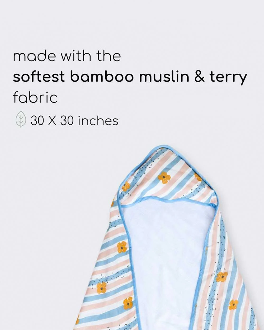 Wrap your little one in cloud-like comfort with our Bamboo Muslin + Terry Hooded Towel. Perfect for post-bath cuddles or after a splash in the pool, this ultra-soft and breathable towel features a cozy hood that keeps your baby warm and dry while adding a touch of cuteness. Thoughtfully crafted with a unique dual-layer design, it combines silky bamboo muslin with plush terry for the perfect balance of softness and absorbency. Ideal for newborns to toddlers up to 3 years, it’s the towel your child will reach for time and time again.