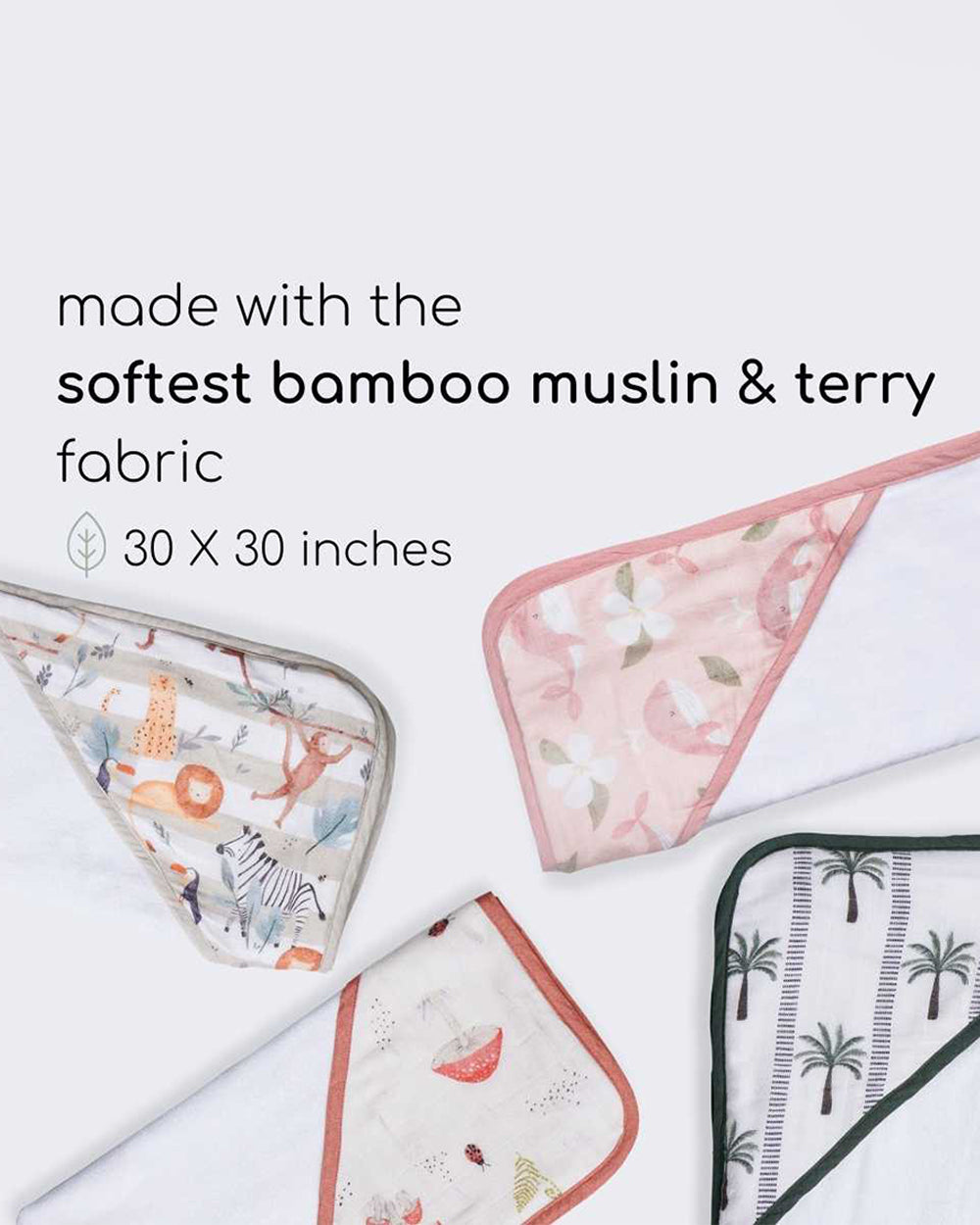 Wrap your little one in cloud-like comfort with our Bamboo Muslin + Terry Hooded Towel. Perfect for post-bath cuddles or after a splash in the pool, this ultra-soft and breathable towel features a cozy hood that keeps your baby warm and dry while adding a touch of cuteness. Thoughtfully crafted with a unique dual-layer design, it combines silky bamboo muslin with plush terry for the perfect balance of softness and absorbency. Ideal for newborns to toddlers up to 3 years, it’s the towel your child will reach for time and time again.