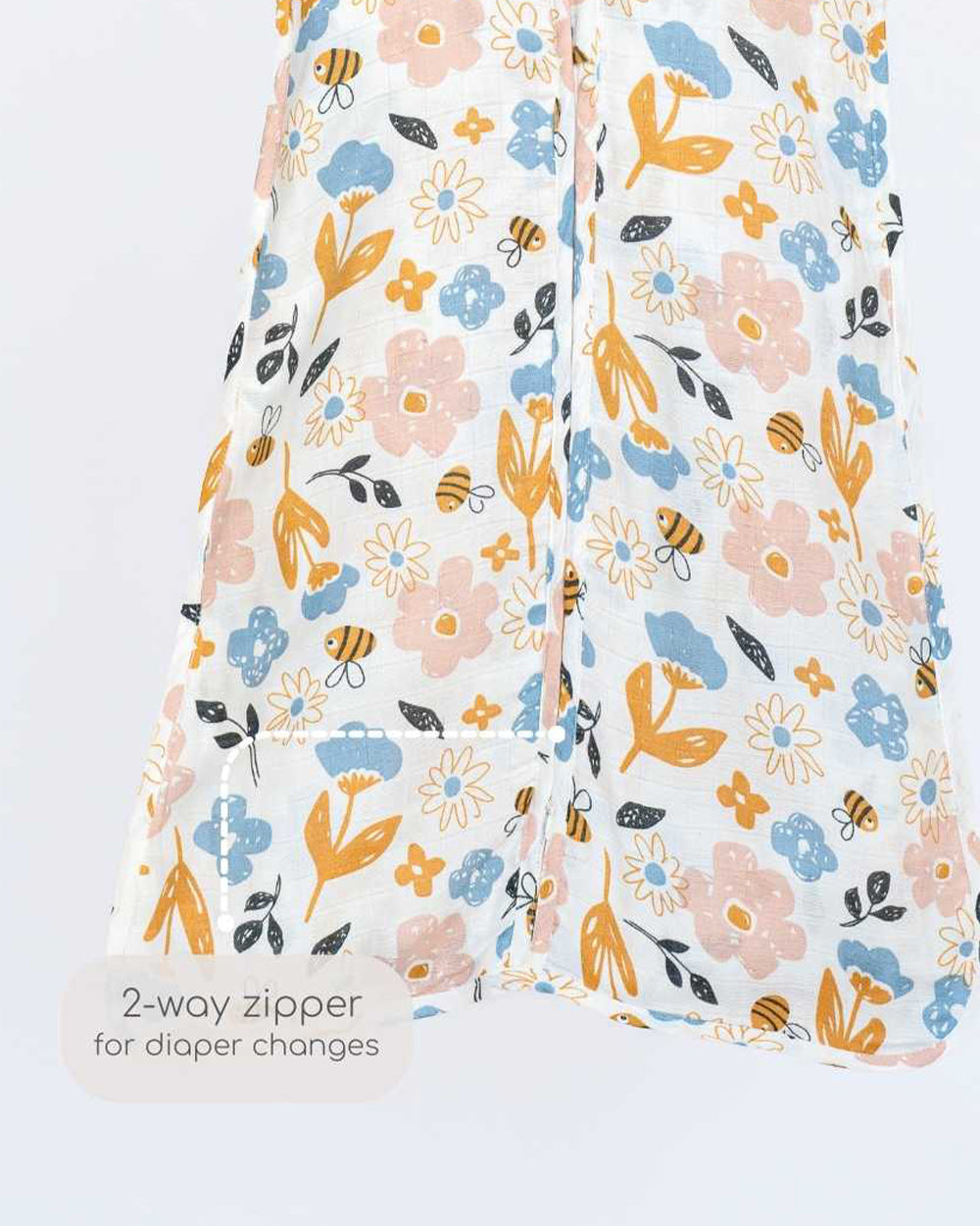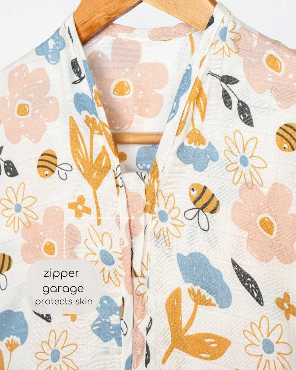 Cocoon Care Bamboo Muslin Sleeping Bag-With Soft & Breathable Muslin-Grows With Your Baby-Busy Bee-For Infants-6 to 12M