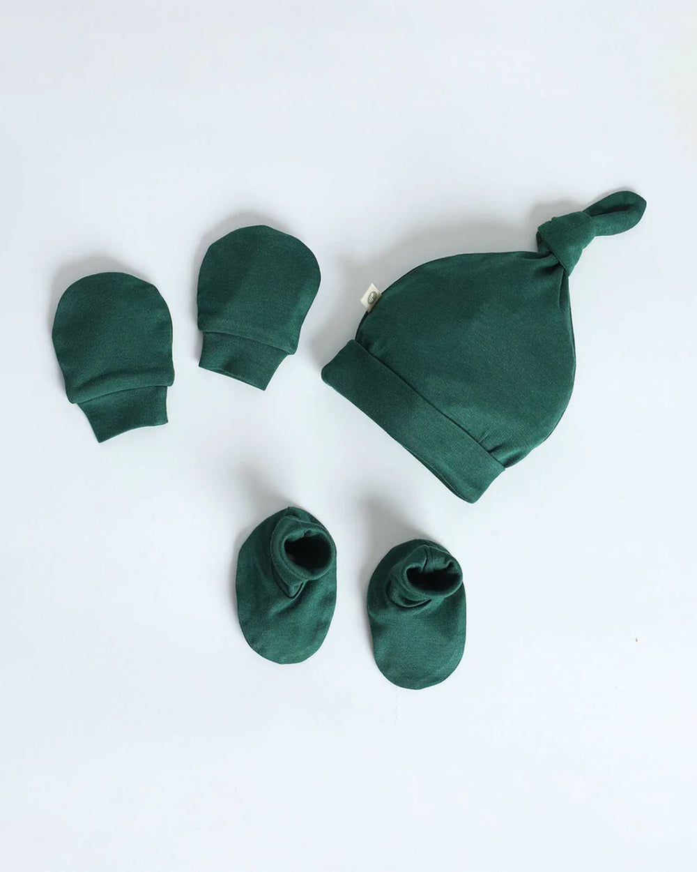 Cocoon Care Bottle Green Caps, Booties & Mittens Set-Solid-Bamboo-For Infants