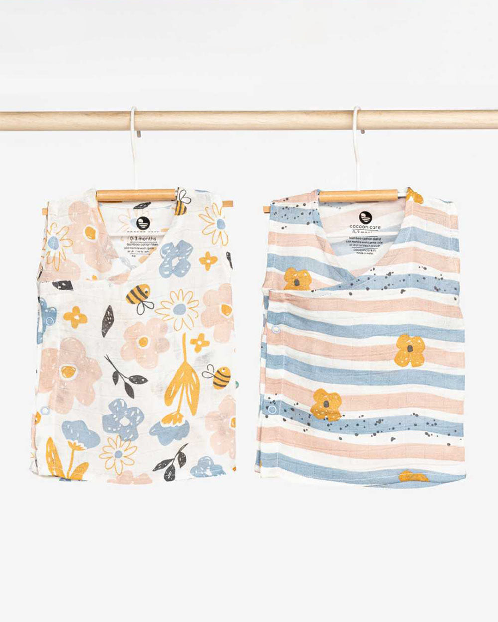 Cocoon Care Pastel Pink Kimono Jhabla-Busy Bee & Striped-Bamboo-Pack of 2-For Infants
