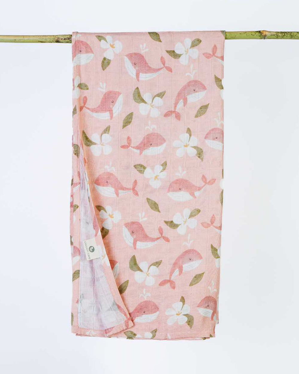 Cocoon Care Pink Whale Bamboo Muslin Swaddle-Peach-Infant Wraps
