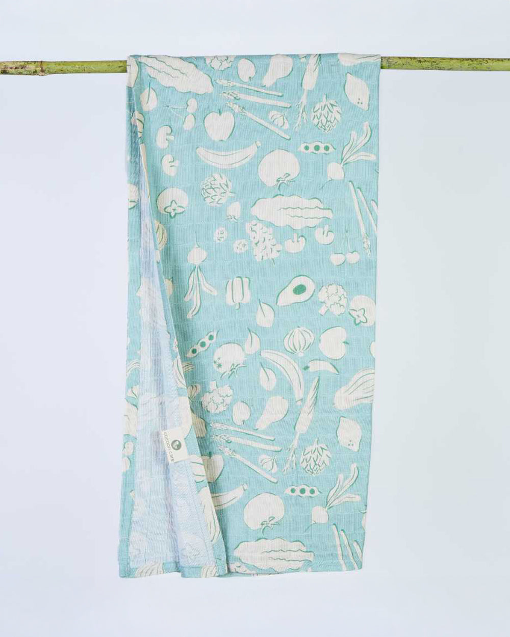 Cocoon Care Veggie Patch Party Bamboo Muslin Swaddle-Light Blue-Infant Wraps