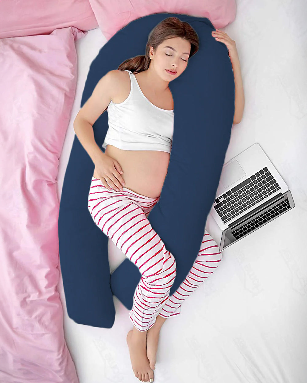 Coozly U shaped Pregnancy Pillow-Full Body-Navy Blue-Premium Lyte-Microfibre-Removable & Washable Cover-For Maternity