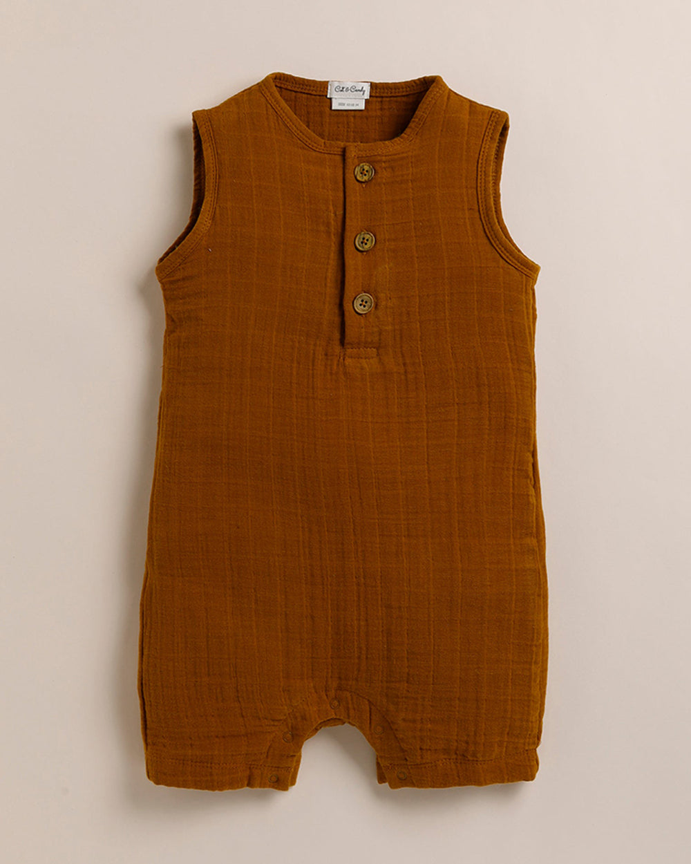 Cot & Candy Baby Ginger Half Romper-Solid-Muslin-For Infants