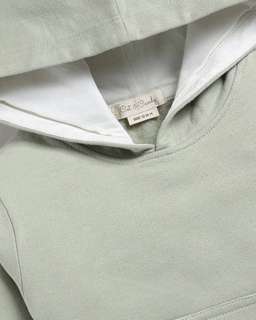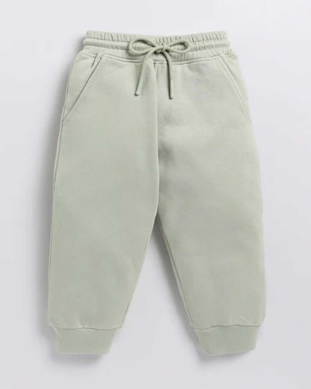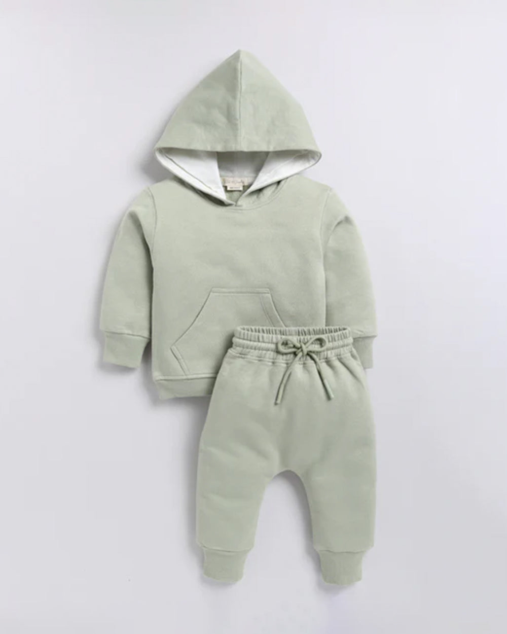 Cot & Candy Baby Pastel Green Winter Wear Hoodie & Jogger Set-Solid-GOTS Certified Organic Fleece-For Infants