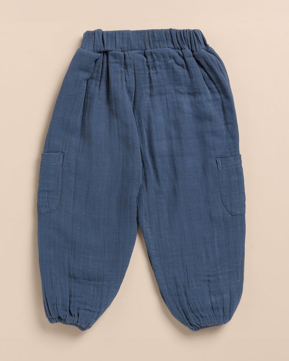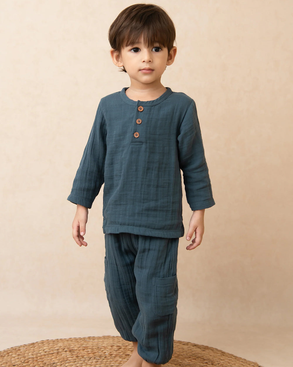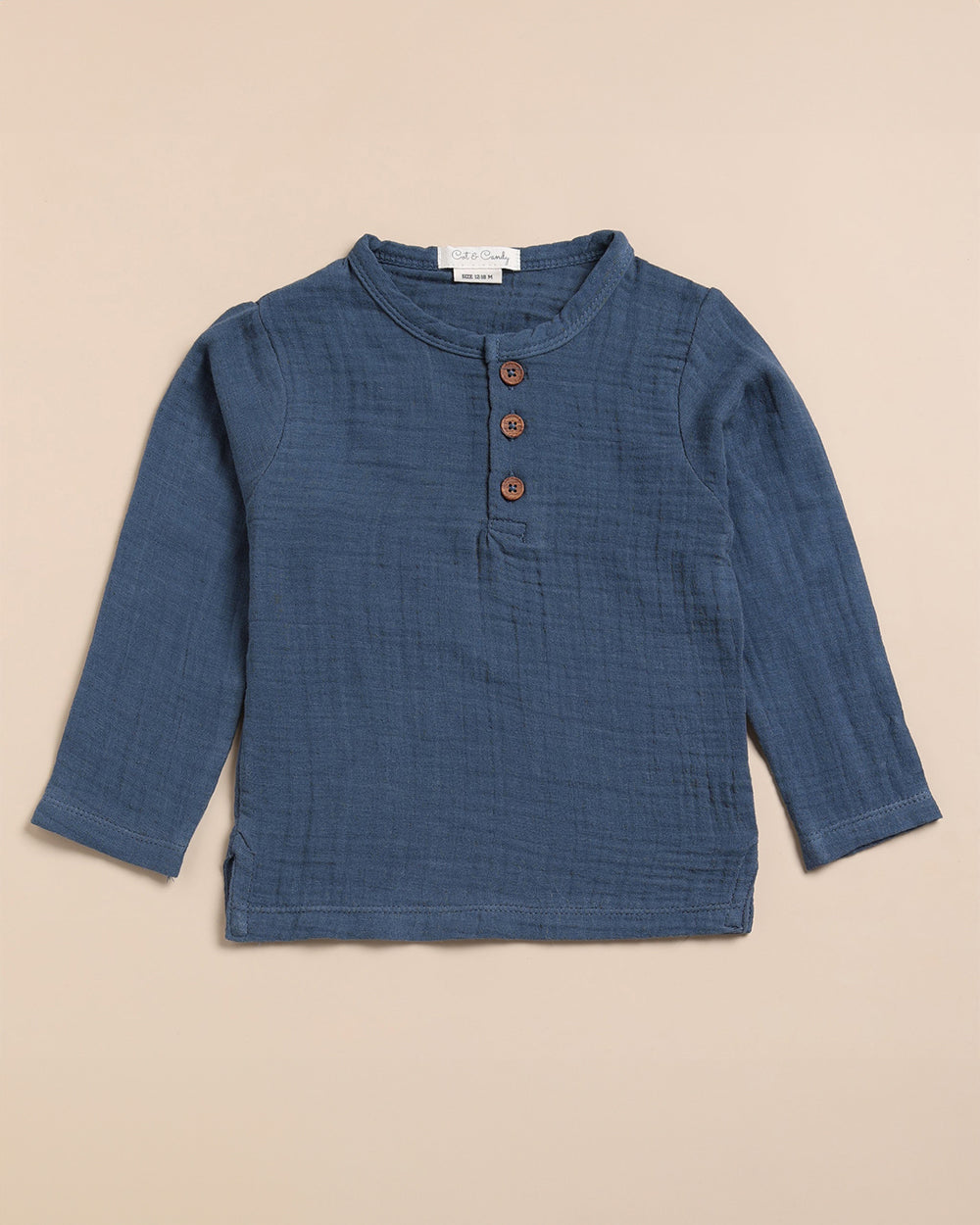 Cot & Candy Navy Blue Shirt & Jogger Set-Organic Muslin-Solid-For Infants