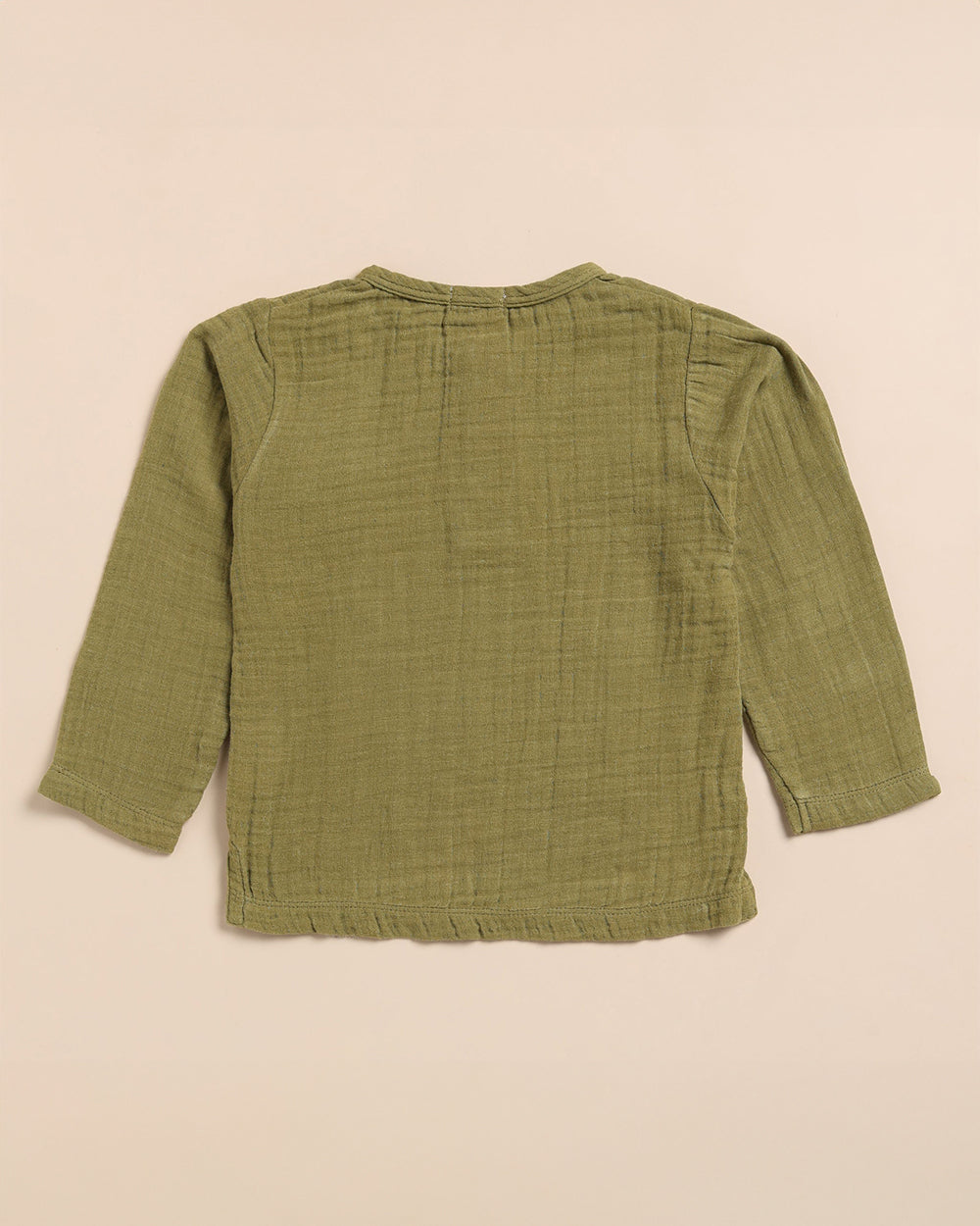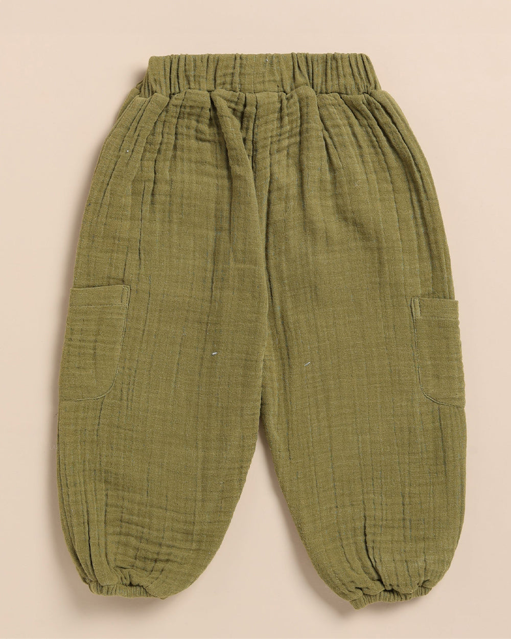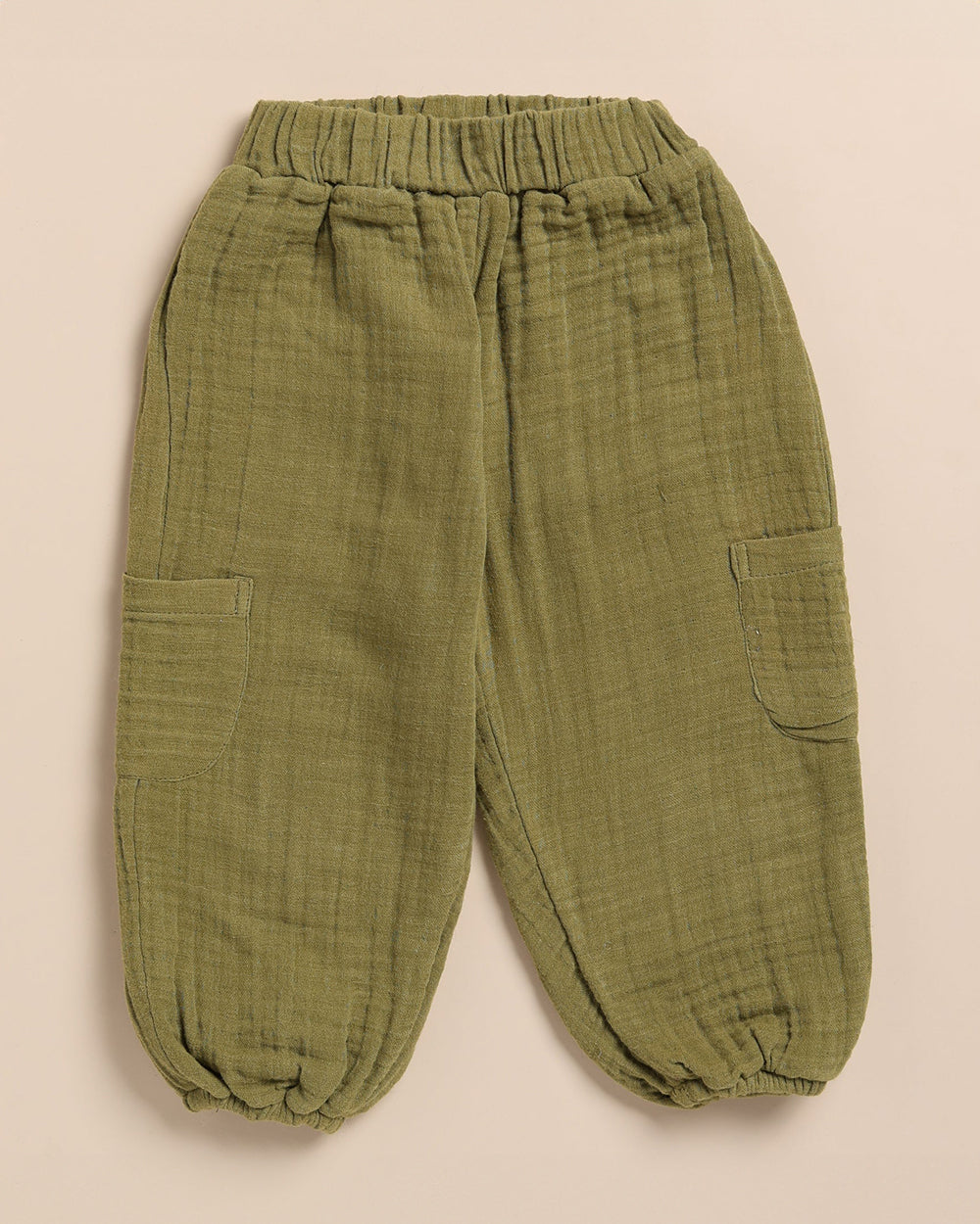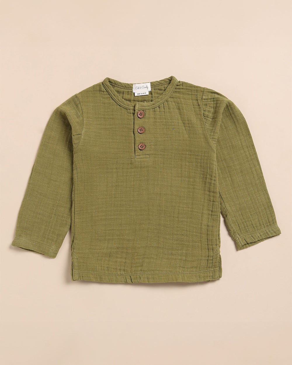 Cot & Candy Olive Shirt & Jogger Set-Organic Muslin-Solid-For Infants
