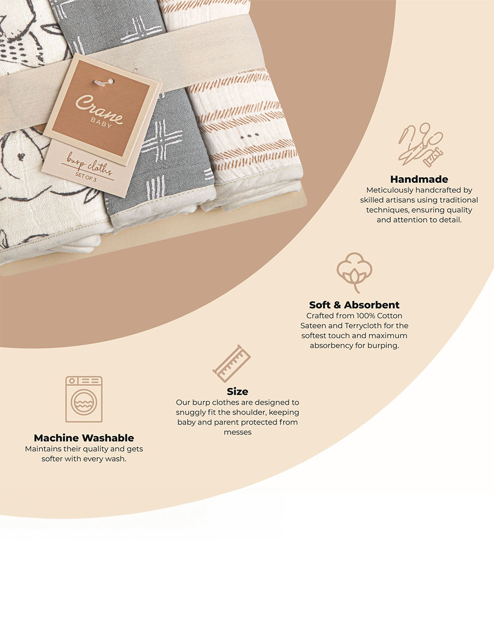 • Ethically Sourced & Eco-Friendly: Thoughtfully sourced with care for both your baby and the environment, these burp cloths are hand screen printed using non-toxic, environmentally friendly dyes.