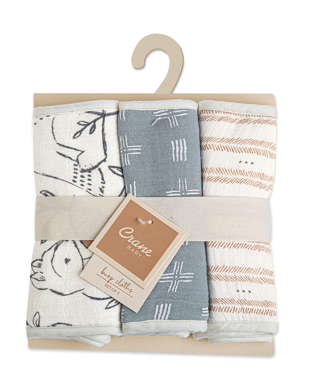 Crane Baby Burp Cloth Set-With Soft Muslin Front & Terry Back-Super Absorbent-Lightweight & Hypoallergenic-Ezra-Pack of 3-For Infants