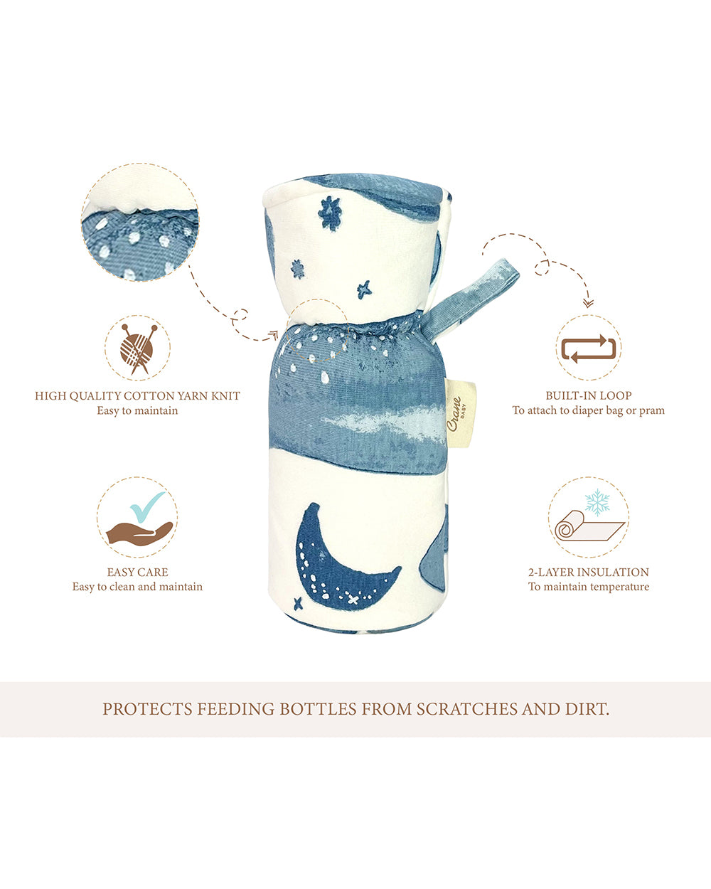 Crane Baby Feeding Bottle Warmer/Cover-With Sherpa Lining-2 Hour Heat Insulation-Fits upto 300 ml Bottle-Caspian-Pack of 2