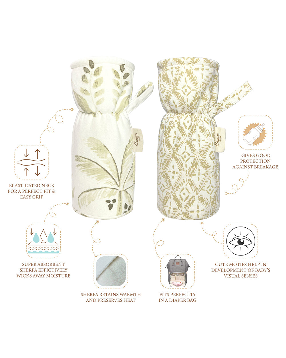 Crane Baby Feeding Bottle Warmer/Cover-With Sherpa Lining-2 Hour Heat Insulation-Fits upto 300 ml Bottle-Kendi-Pack of 2