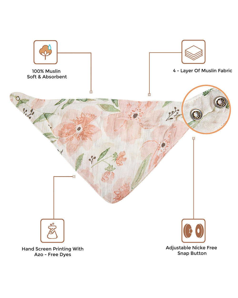 Introducing our beautifully crafted muslin bibs, designed to make mealtime clean, comfortable, and fun. Featuring playful themes and vibrant colors, these bibs not only catch spills and spit-ups effortlessly but also stimulate your baby’s curiosity. Made from the softest muslin fabric, our bibs get even softer with every wash, providing gentle care for your baby’s sensitive skin. Practical and stylish, these bibs are a must-have for every mealtime moment.
