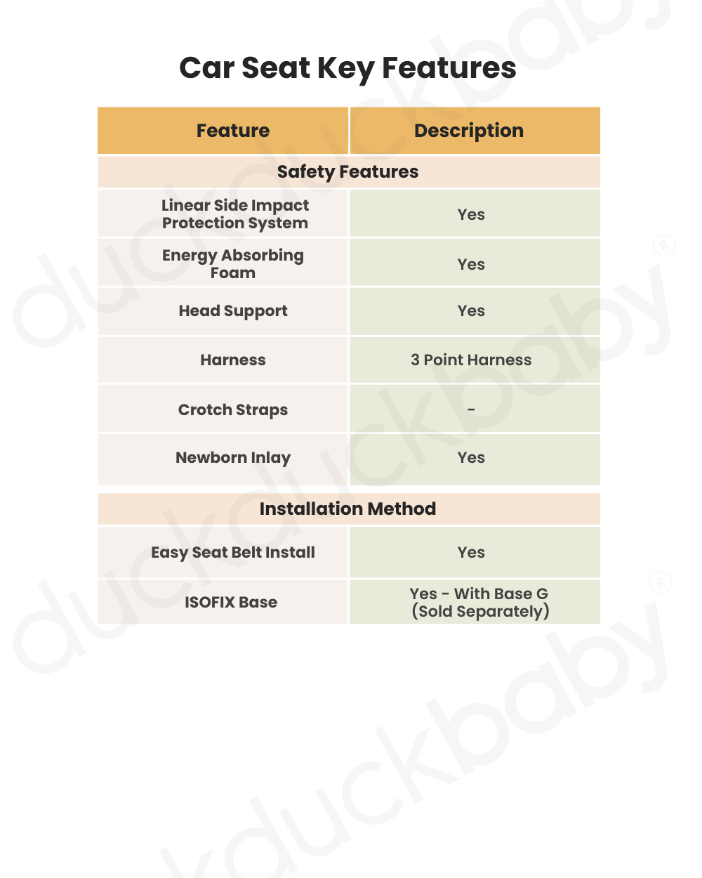 • 180° Rotation (with Base G): Effortlessly rotate the seat to the car door for easy access and placement of your baby.